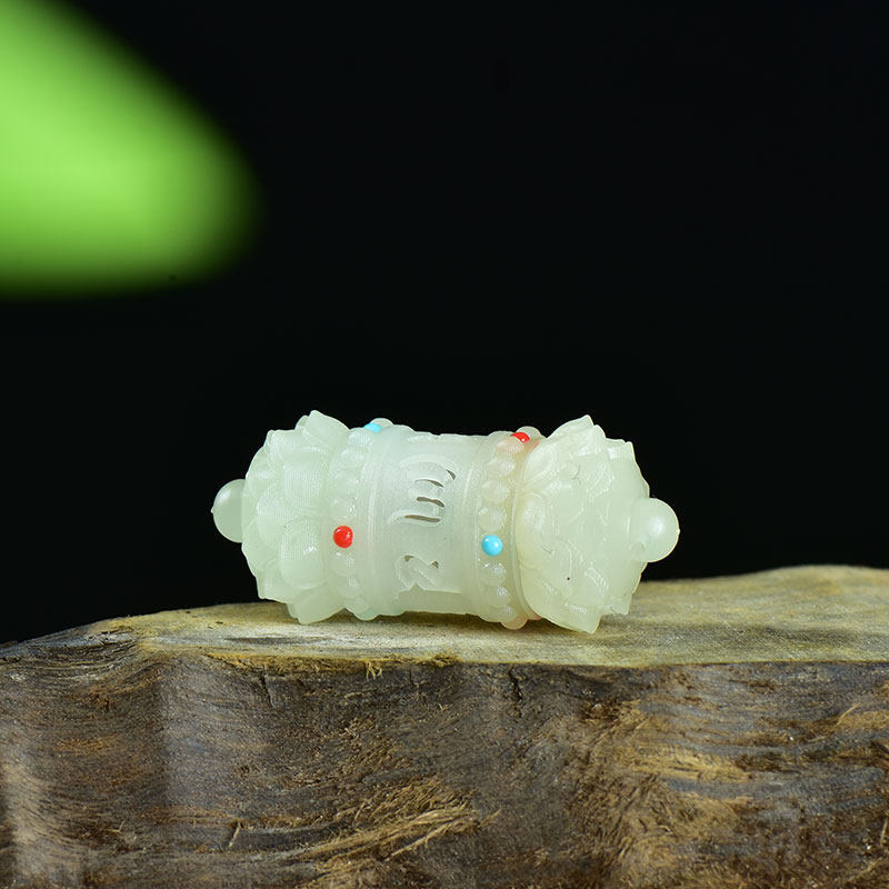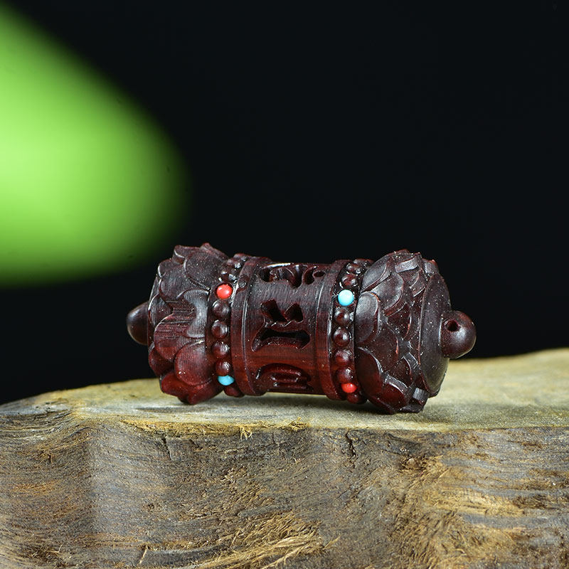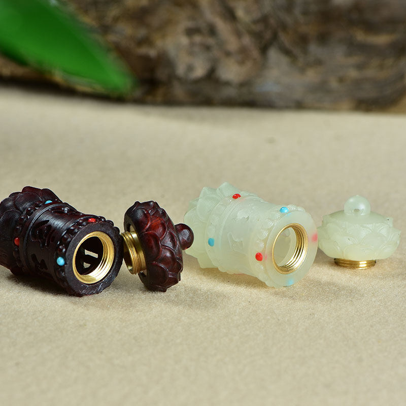 紫檀木夜光石莲花六字真言转经香囊盒手工diy文玩配饰吊坠车挂