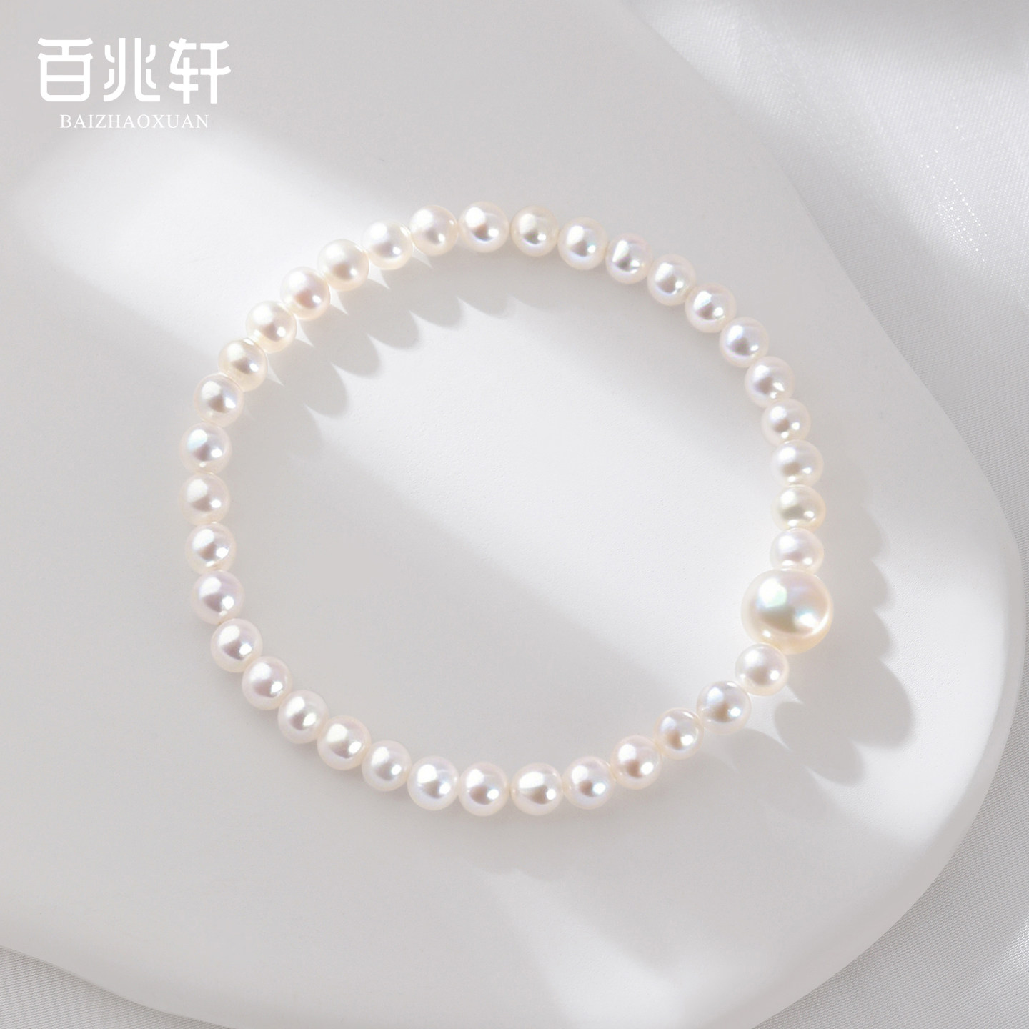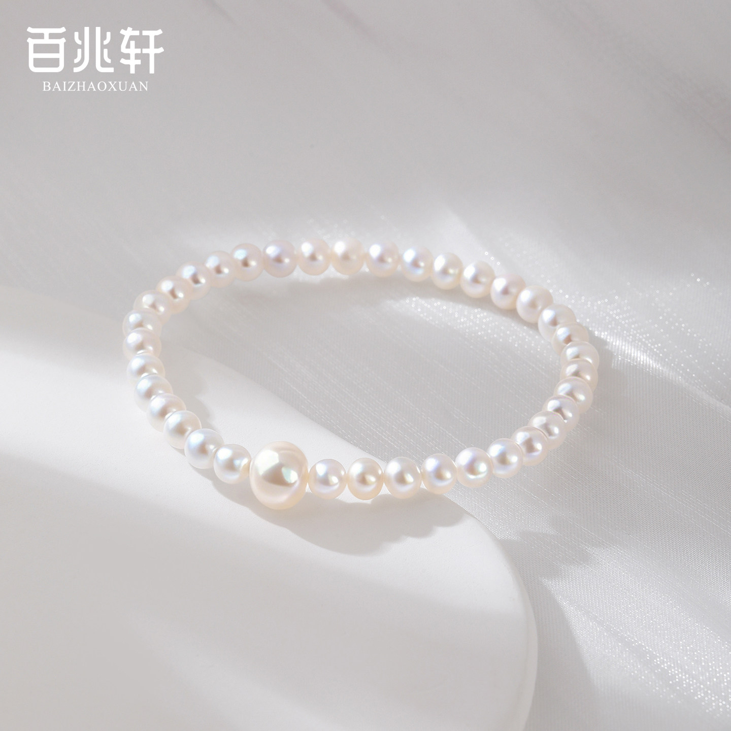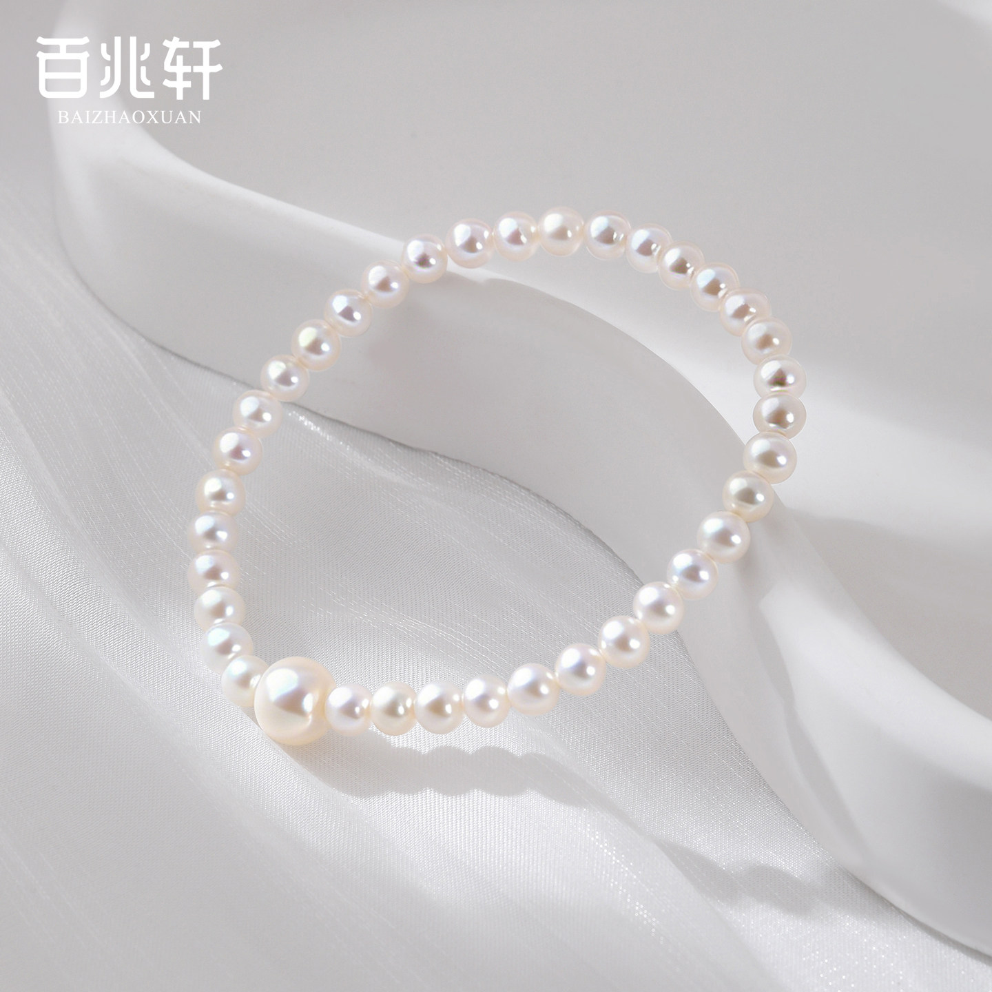 百兆轩极强光小米珠珍珠手链正圆天然淡水珍珠手串送女友生日礼物