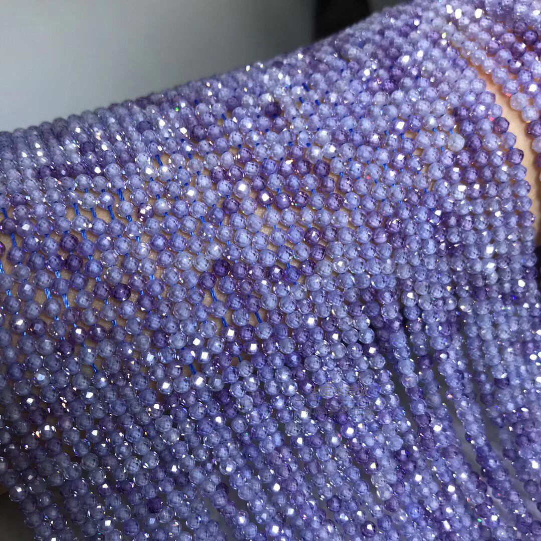 2MM 3MM 4MM 紫色锆石切面刻面散珠 硬抛切角足球面水晶半成品珠