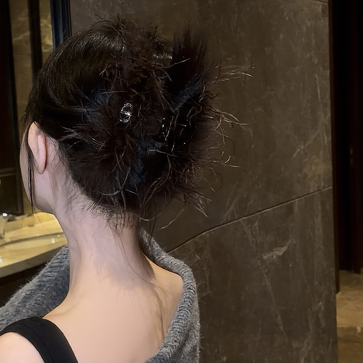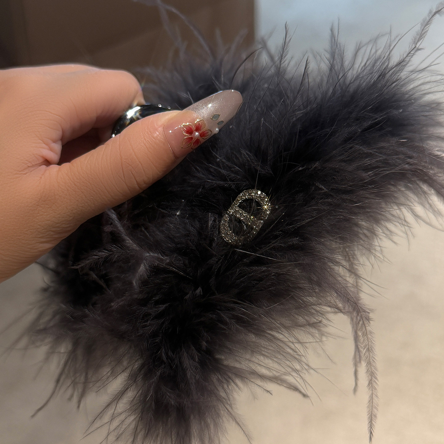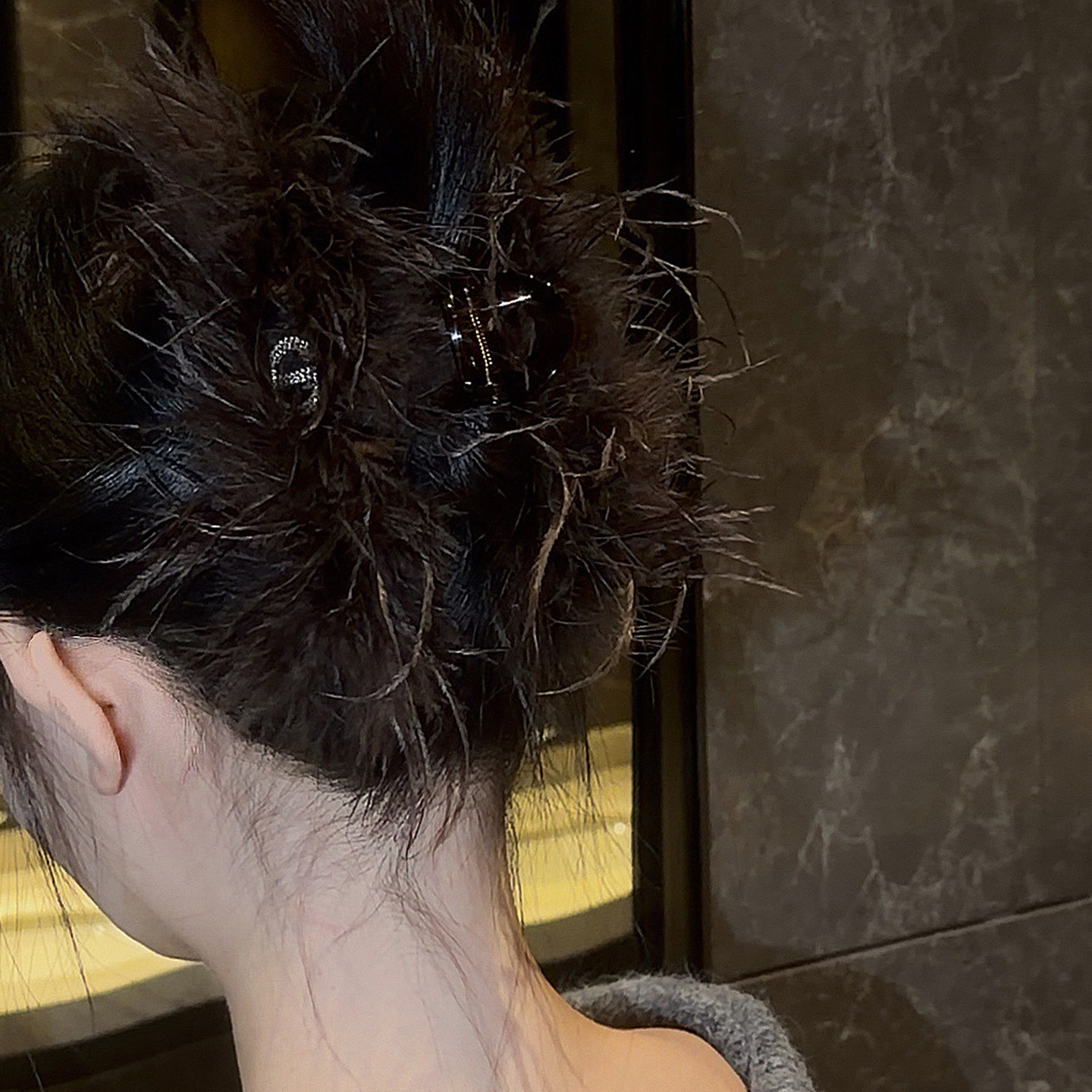 巴黎限定◆毛毛发夹女后脑勺大号夹定制色系鸵鸟毛抓夹2026鲨鱼夹
