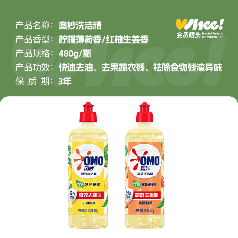 会员精选奥妙高效酵素洗洁精480g*2瓶装