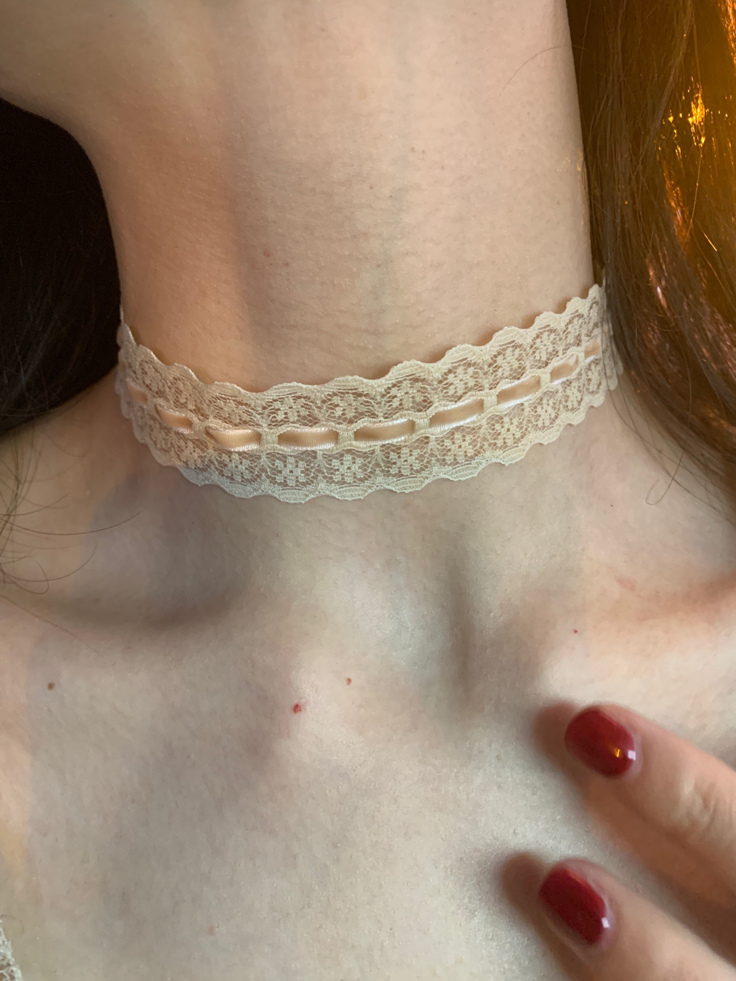 原创款 燕麦肤色choker女高级感蕾丝颈链配饰秋冬锁骨链贴脖项链