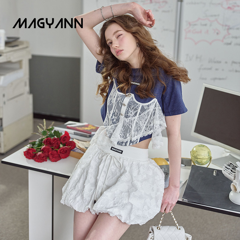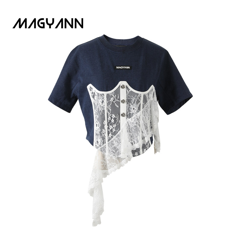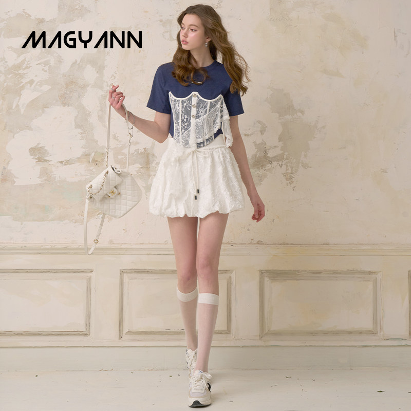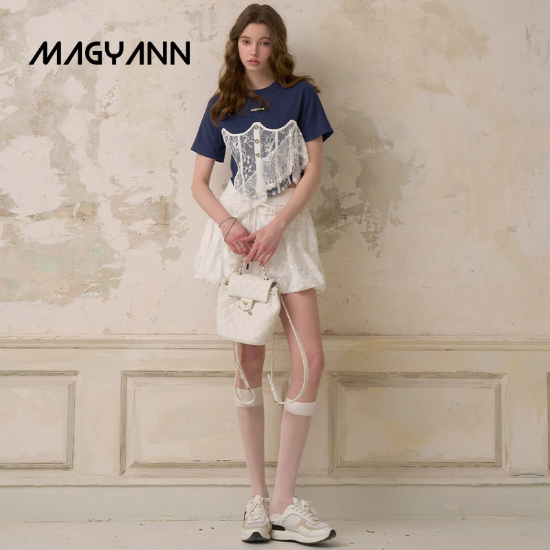 【翻糖花园】Magyann设计师原创2026夏少女蕾丝胸衣拼接T恤短款女