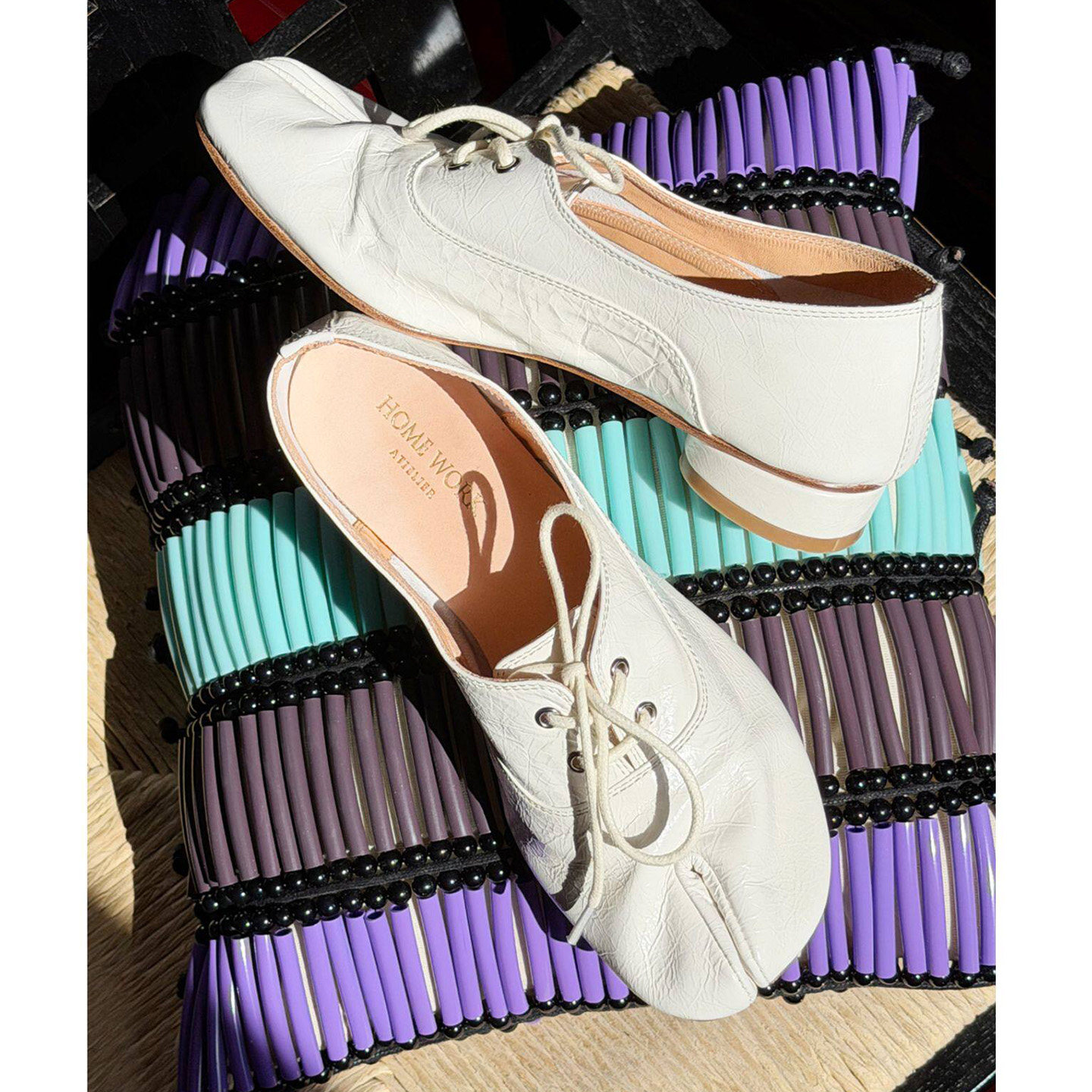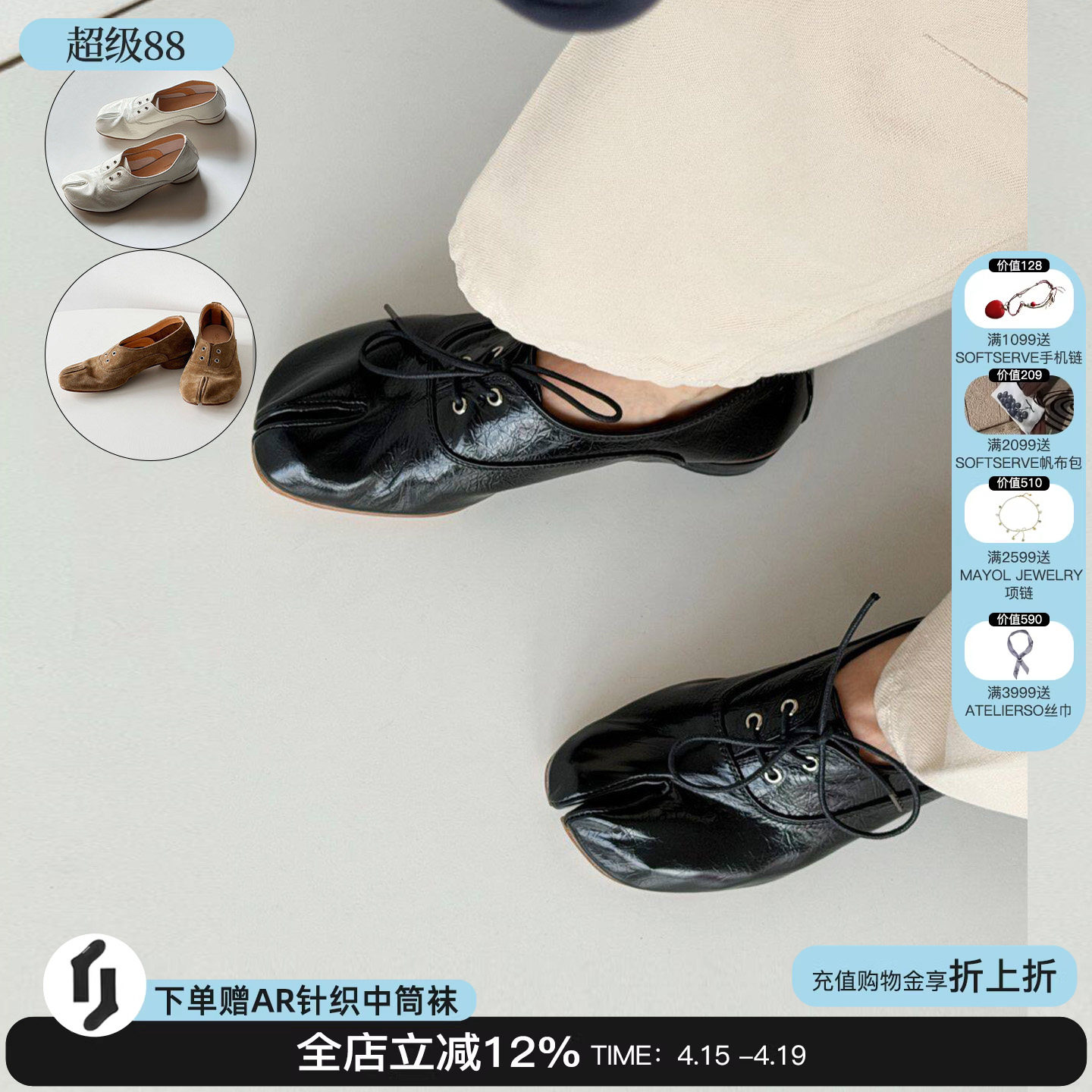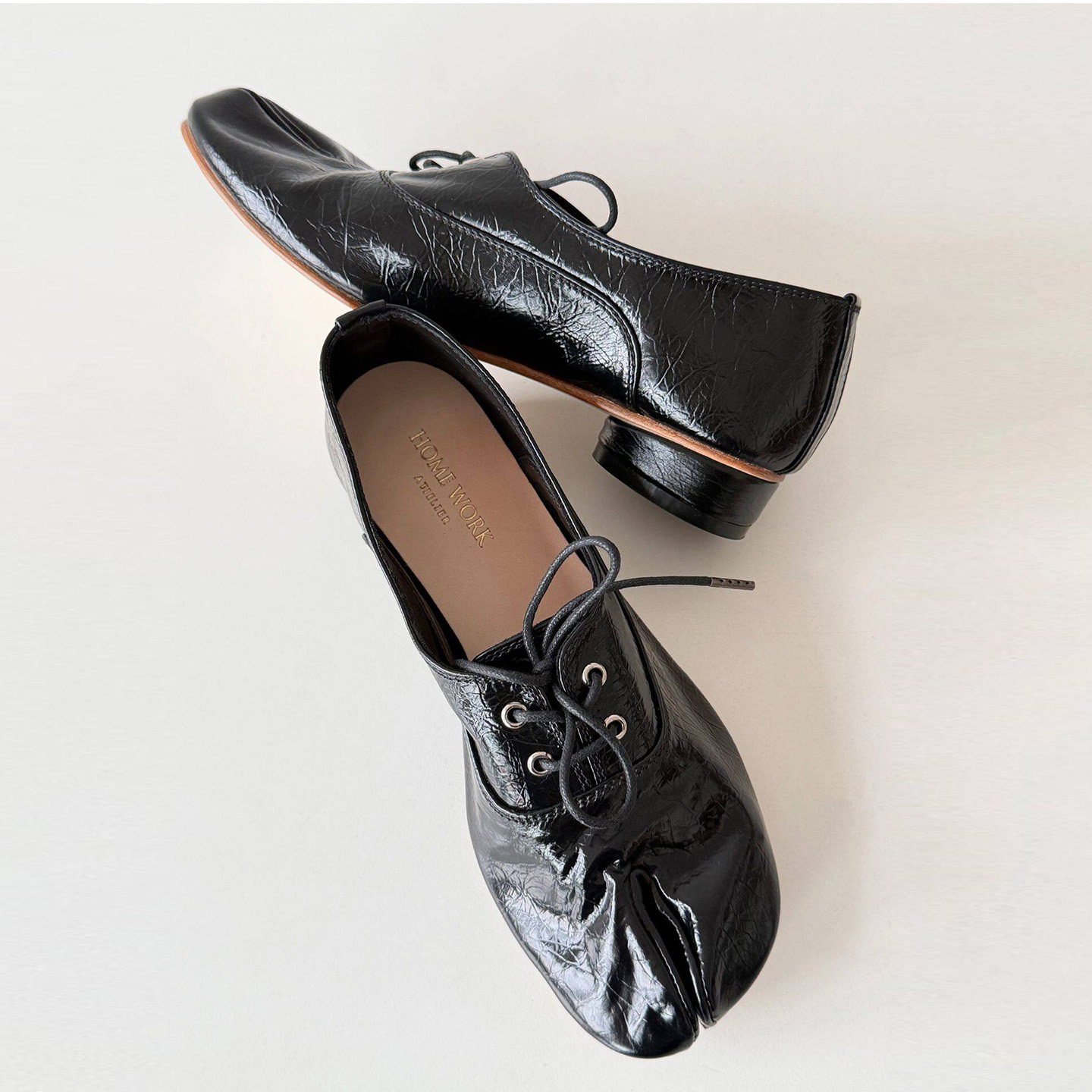 homework atelier 26新款手工tabi分趾鞋忍者系带褶皱浅口皮鞋