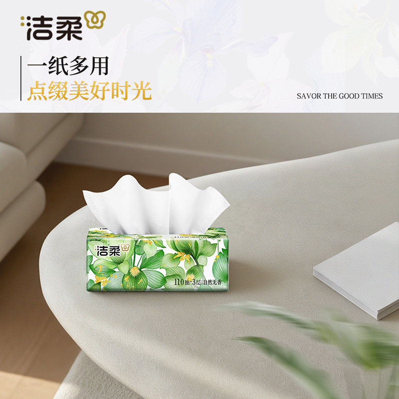 洁柔抽纸东方花园餐巾纸无香110抽面巾纸卫生纸可湿水纸巾宿舍用