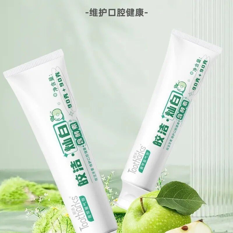 皎洁灿白牙膏含酵素水果味青苹果气泡护龈固齿清新口气
