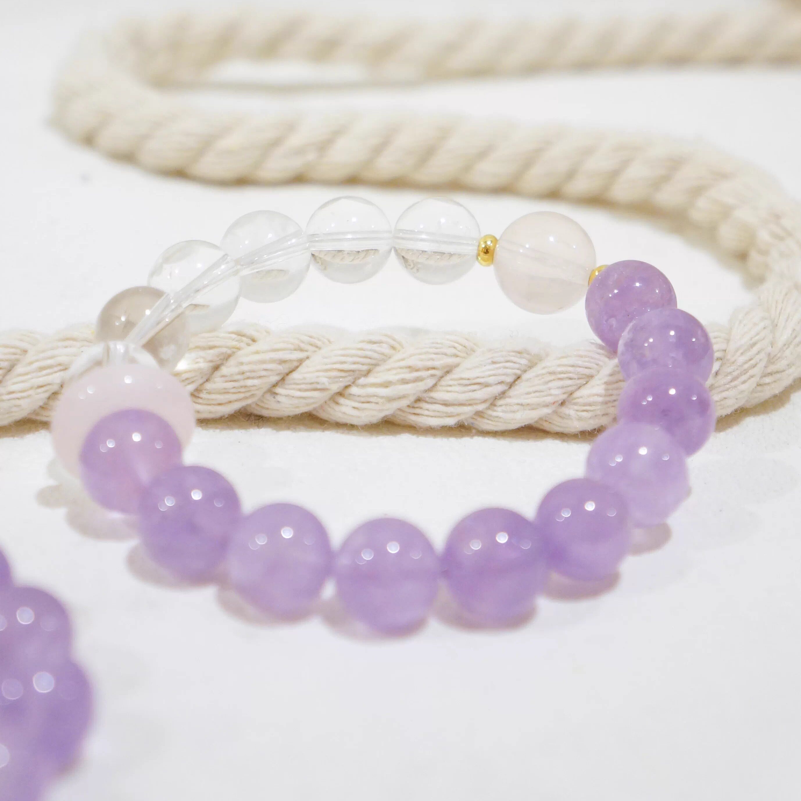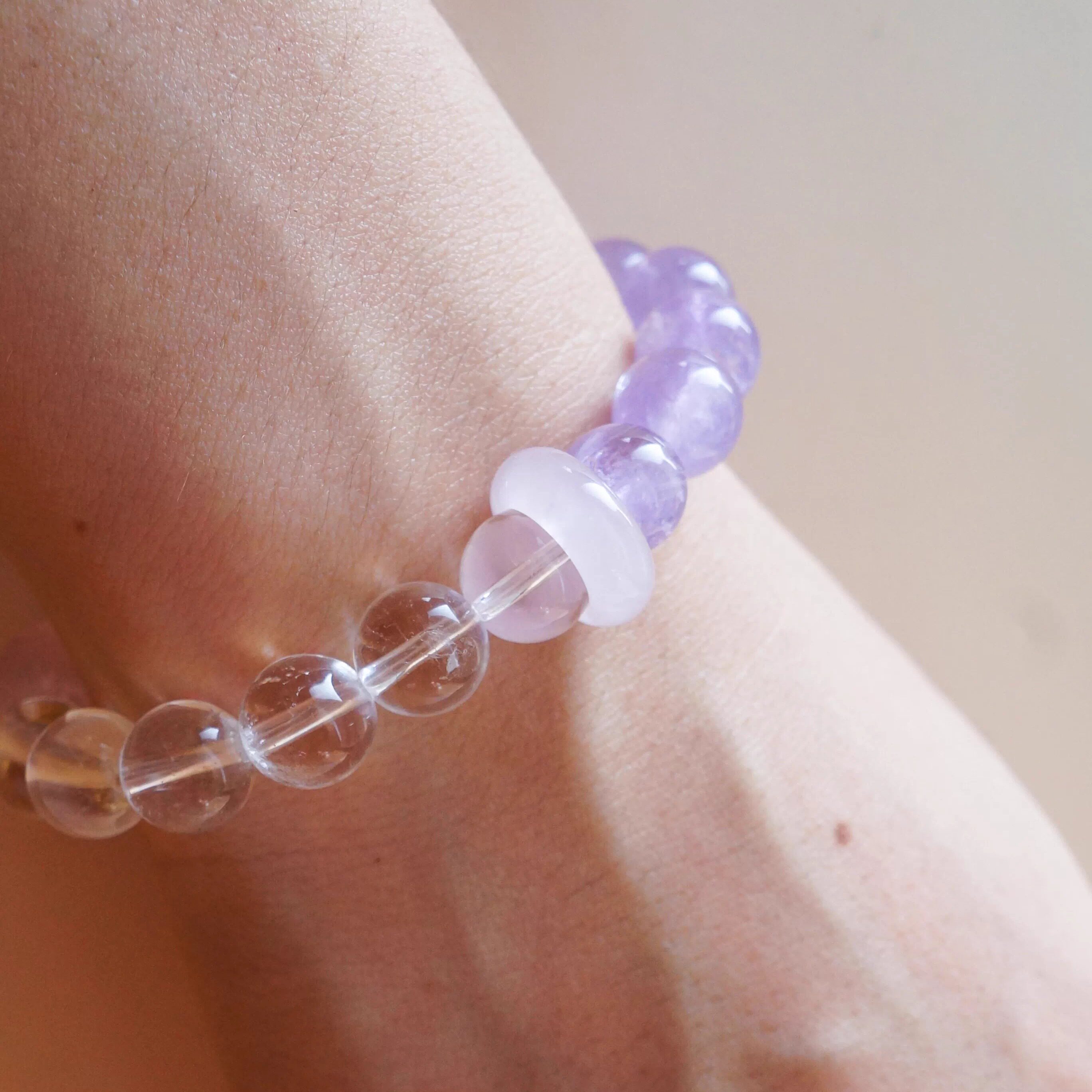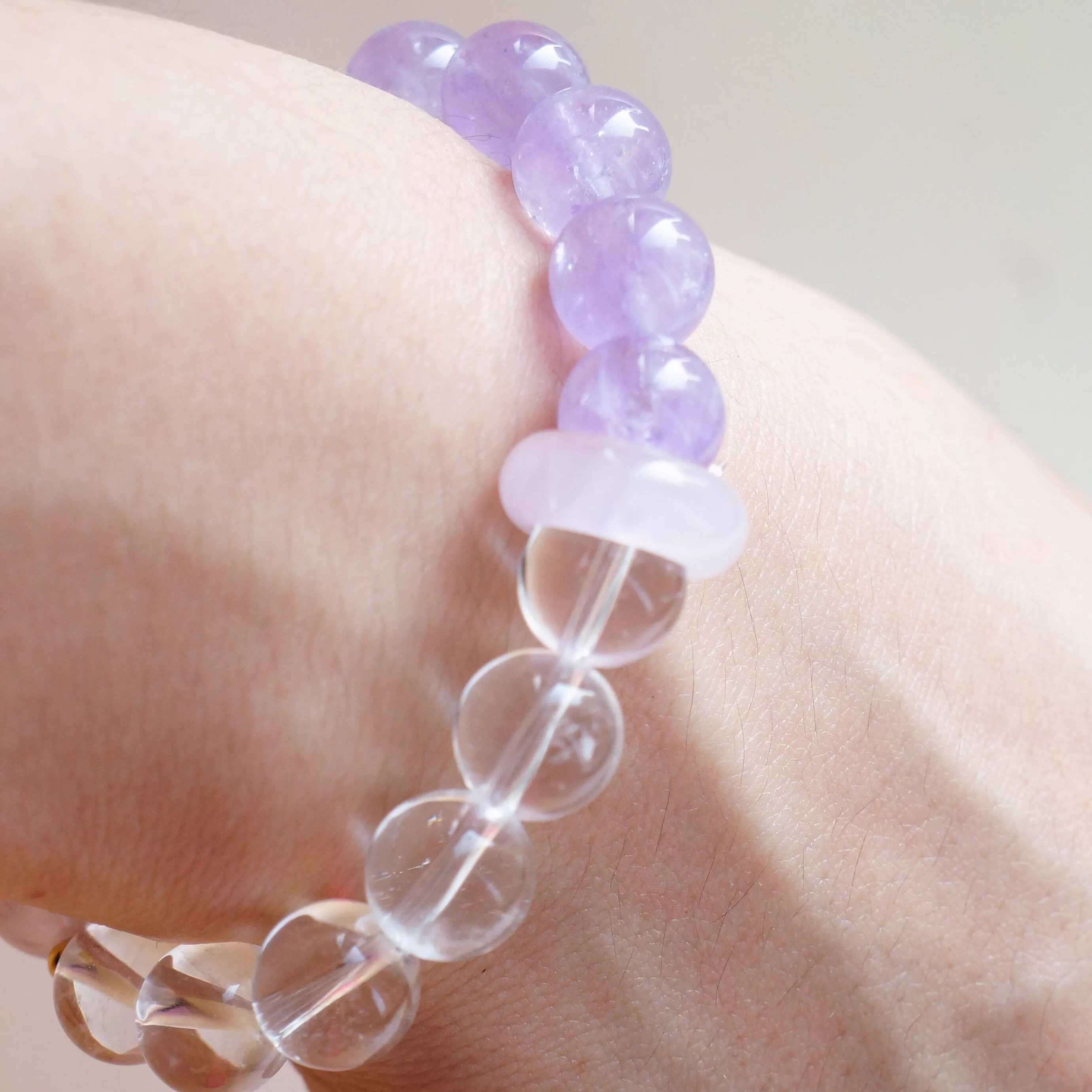 xhenxhen「合璧」天然水晶双拼手链紫水晶白水晶原创手作单圈手串
