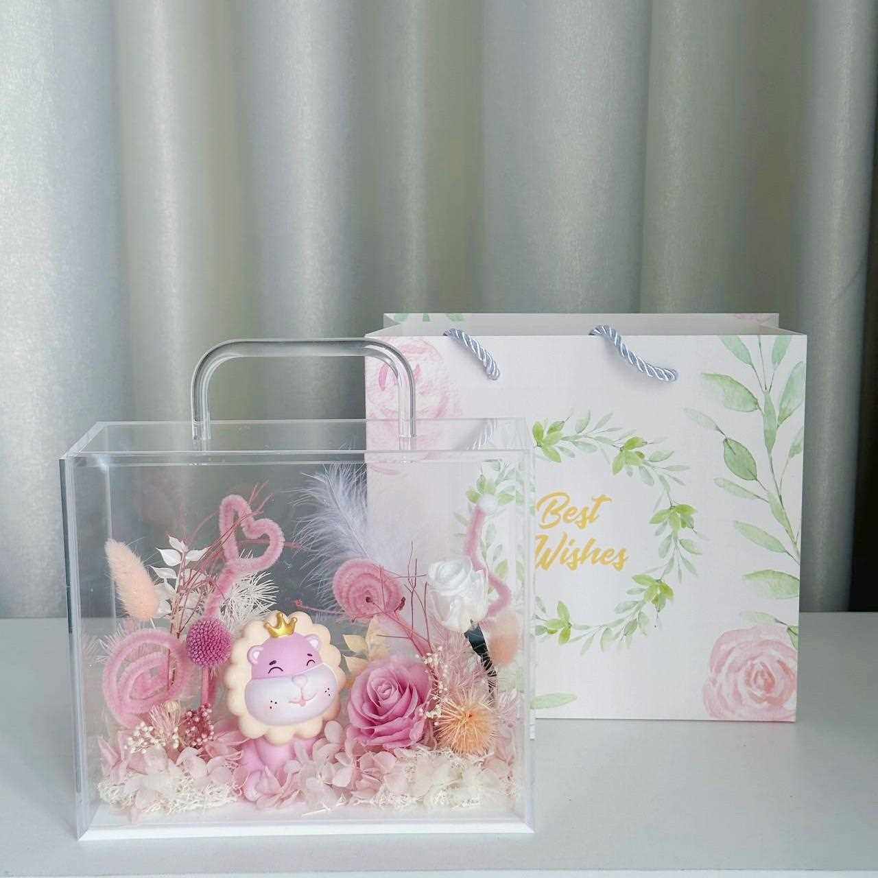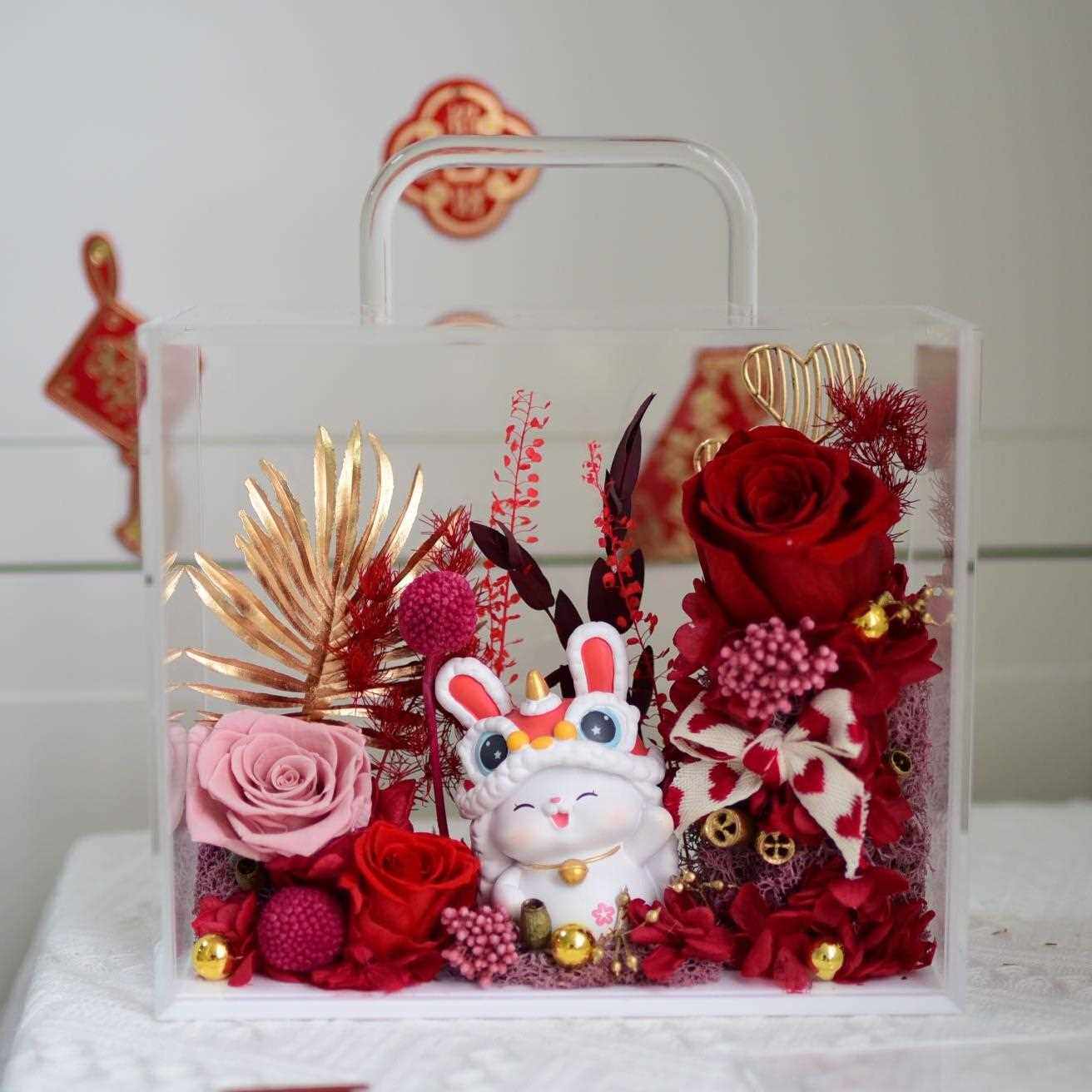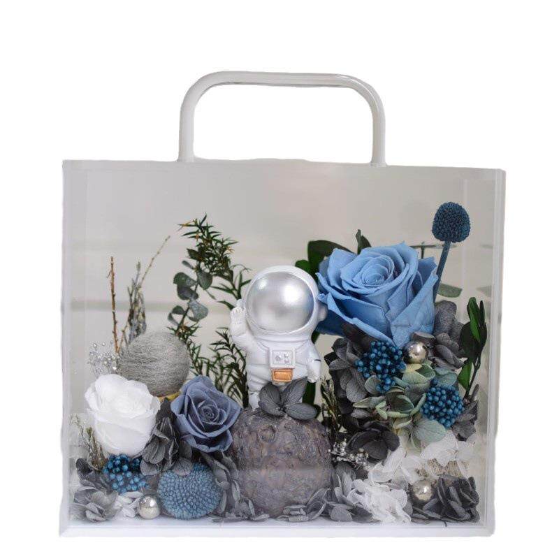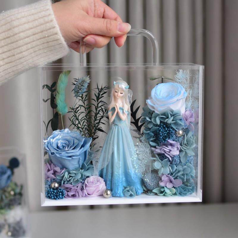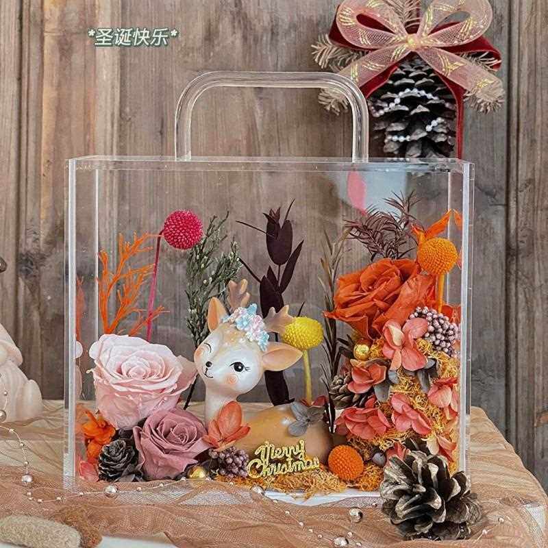 直销新款直发永生玫瑰花干花手提亚克力花盒圣诞情人节新年礼品