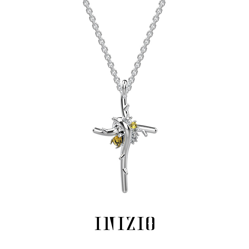 INIZIO 荆棘之光 荆棘十字架吊坠项链925纯银原创设计气质小众
