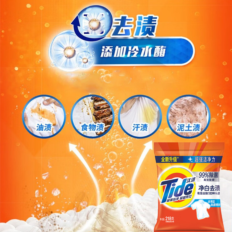 汰渍净白去渍洗衣粉218g家用家庭装去渍小包小袋装可整箱整袋正品