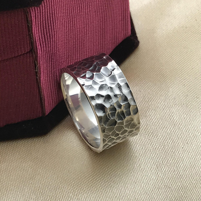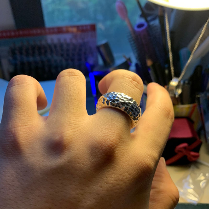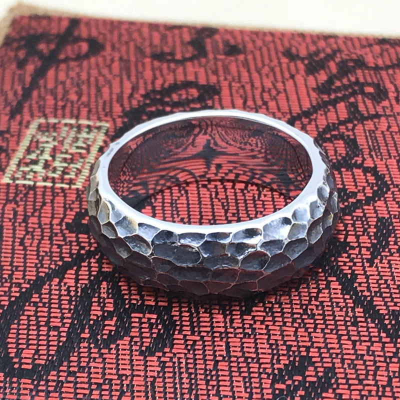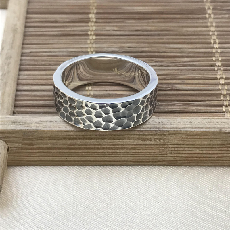 S999纯银锤纹手工锤印戒指定制银戒指男款原创戒指做旧银戒指宽面