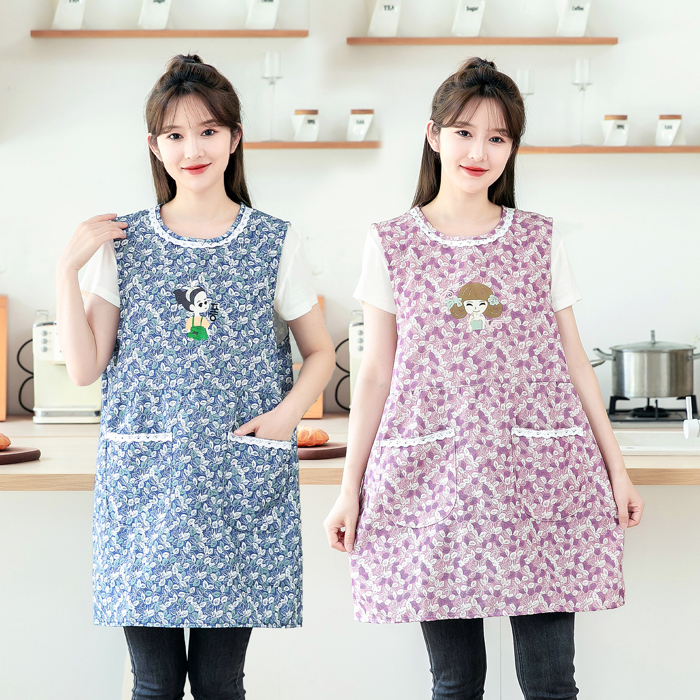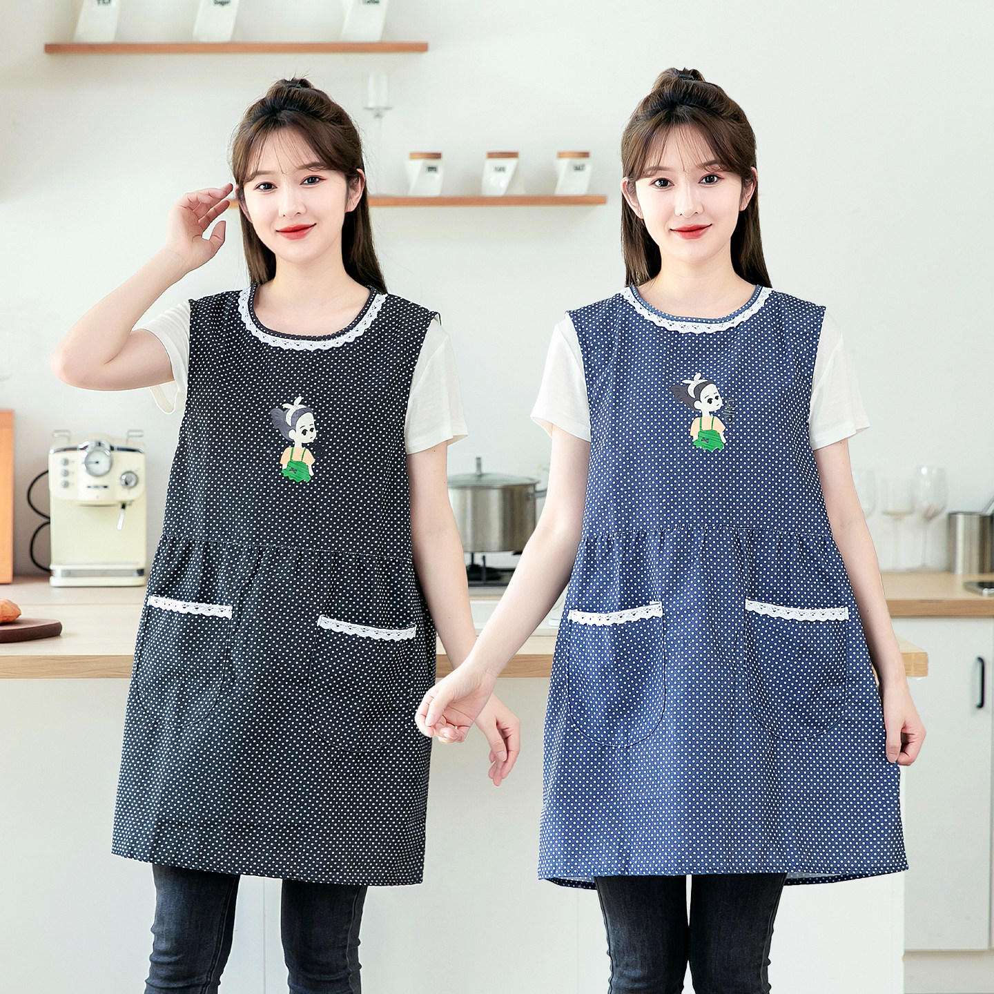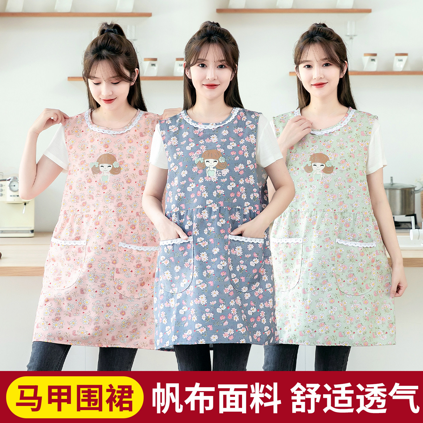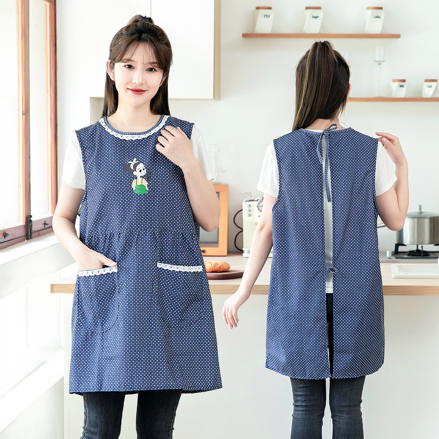 厨房做饭围裙女时尚洋气坎肩防污无袖罩衣大人外穿透气工作服护衣
