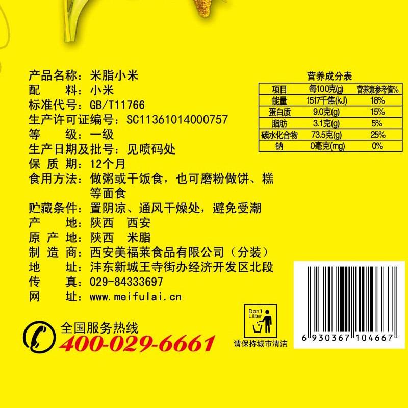 68¥ CZ005 I1O856w5kMB¥ https://m.tb.cn/h.iKvbh9r 黄小米 陕西特产 米脂油小米陕北特产农家五谷杂粮2.5kg包装 --------------------- 黄小米 陕西特产 米脂油小米陕北特产农家五谷杂粮2.5kg包装 【原售价】69元 【现售价】51.9元 【推荐理由】