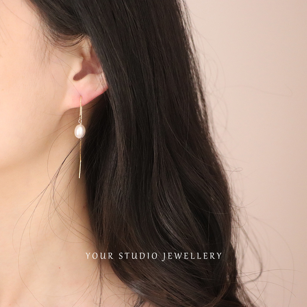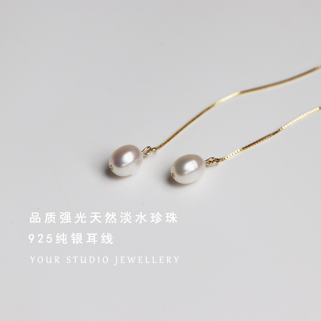 YOUR STUDIO轻奢极简气质天然淡水珍珠巴洛克纯银耳线耳饰法式