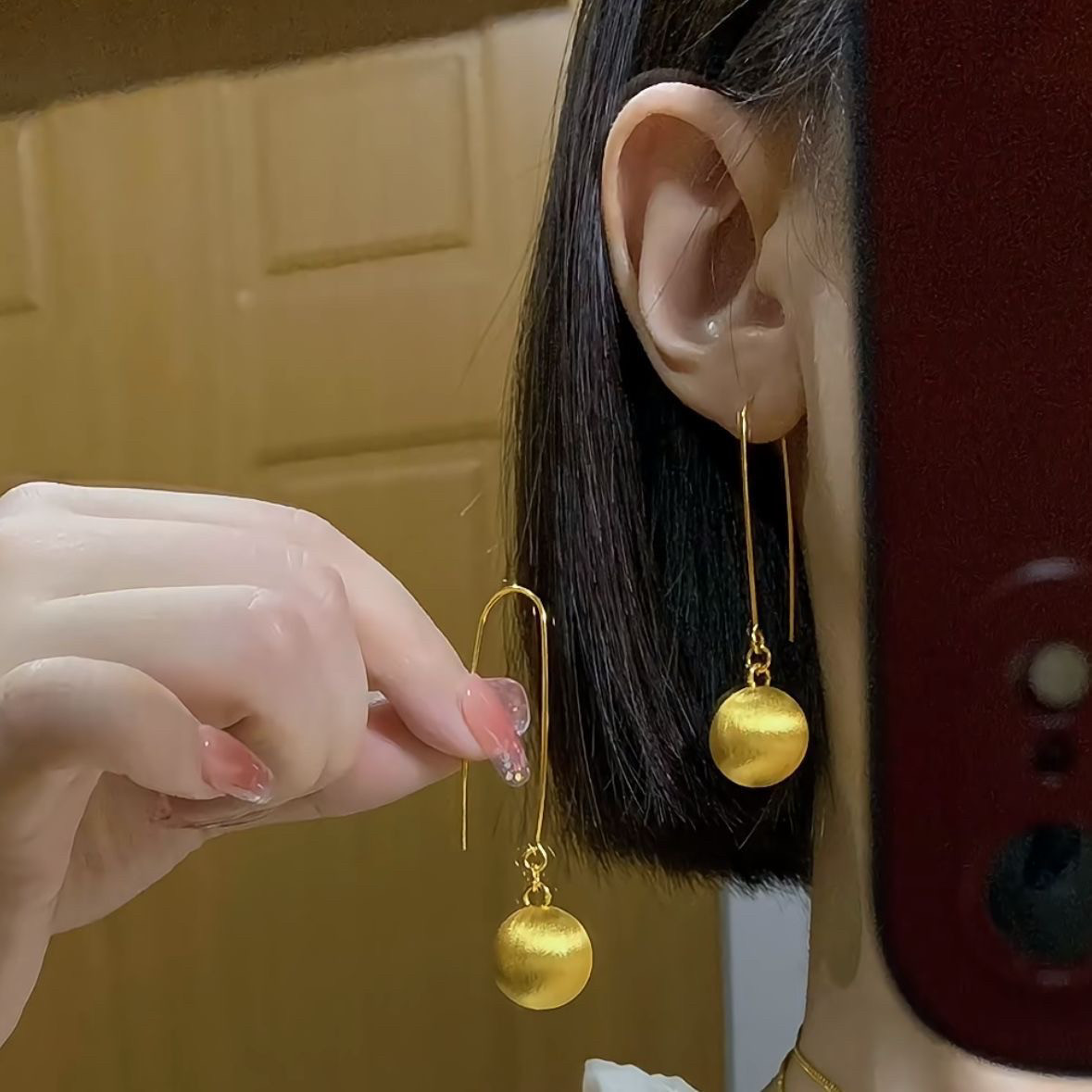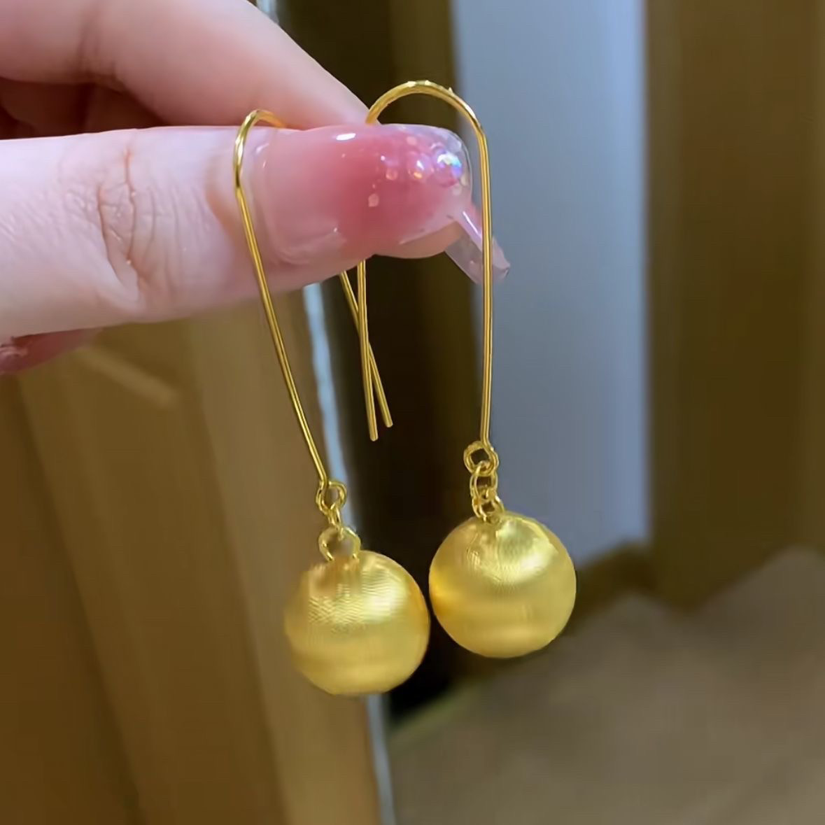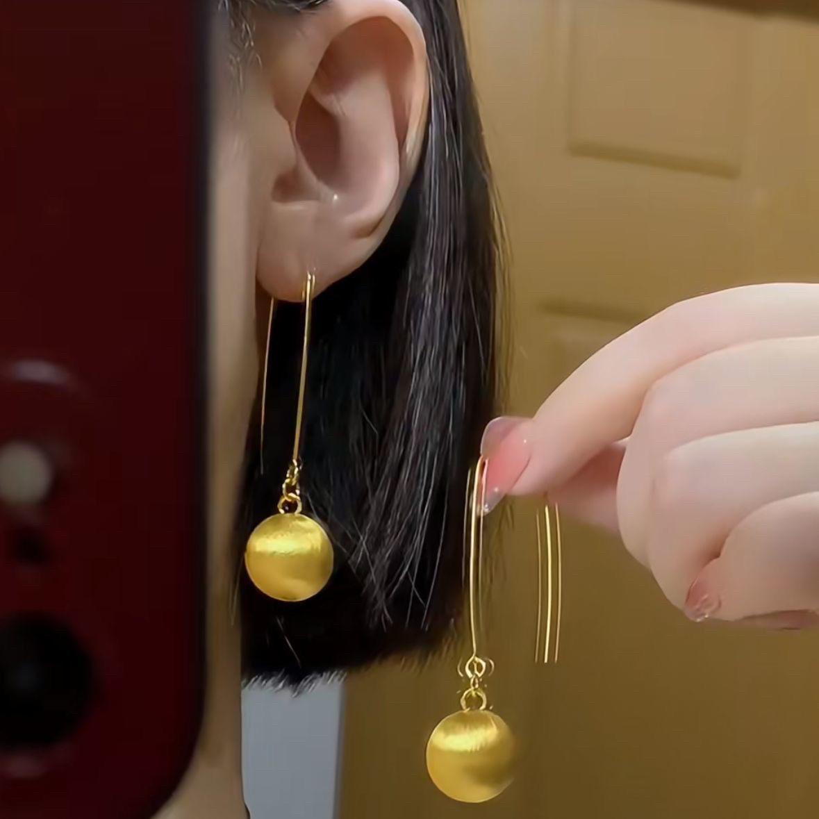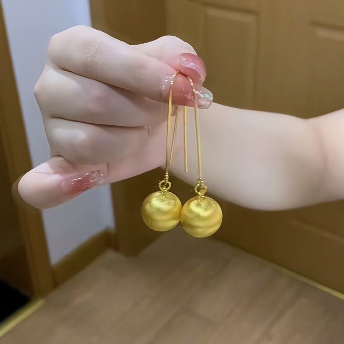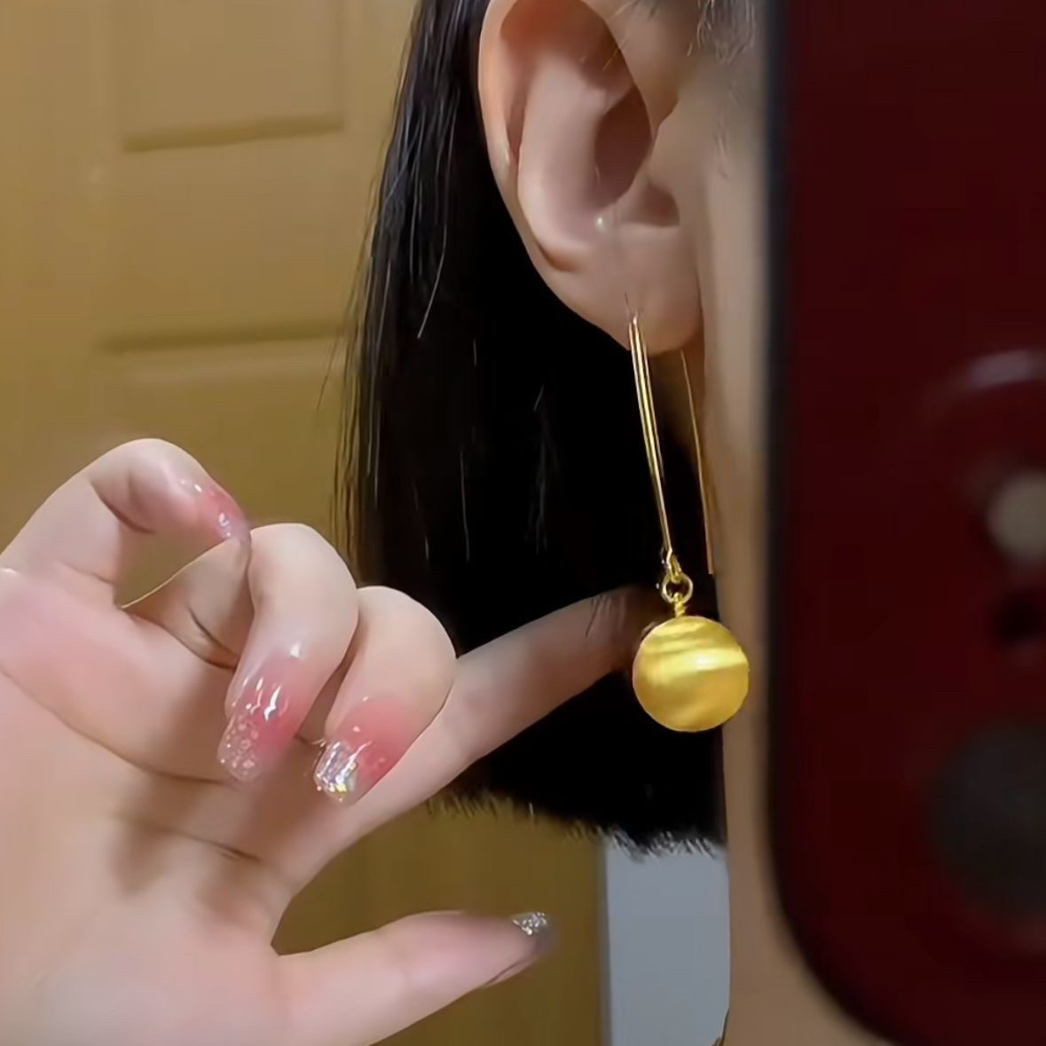 原创简约经典大气黄金色拉丝球耳坠时尚气质百搭高颜值精致耳环女
