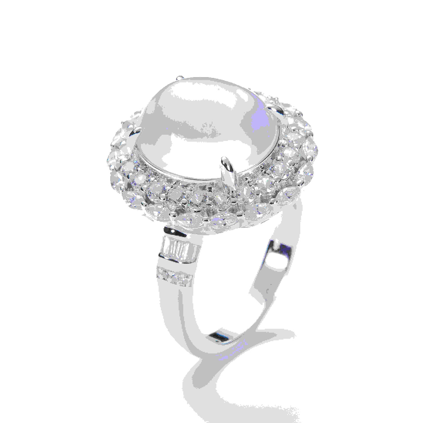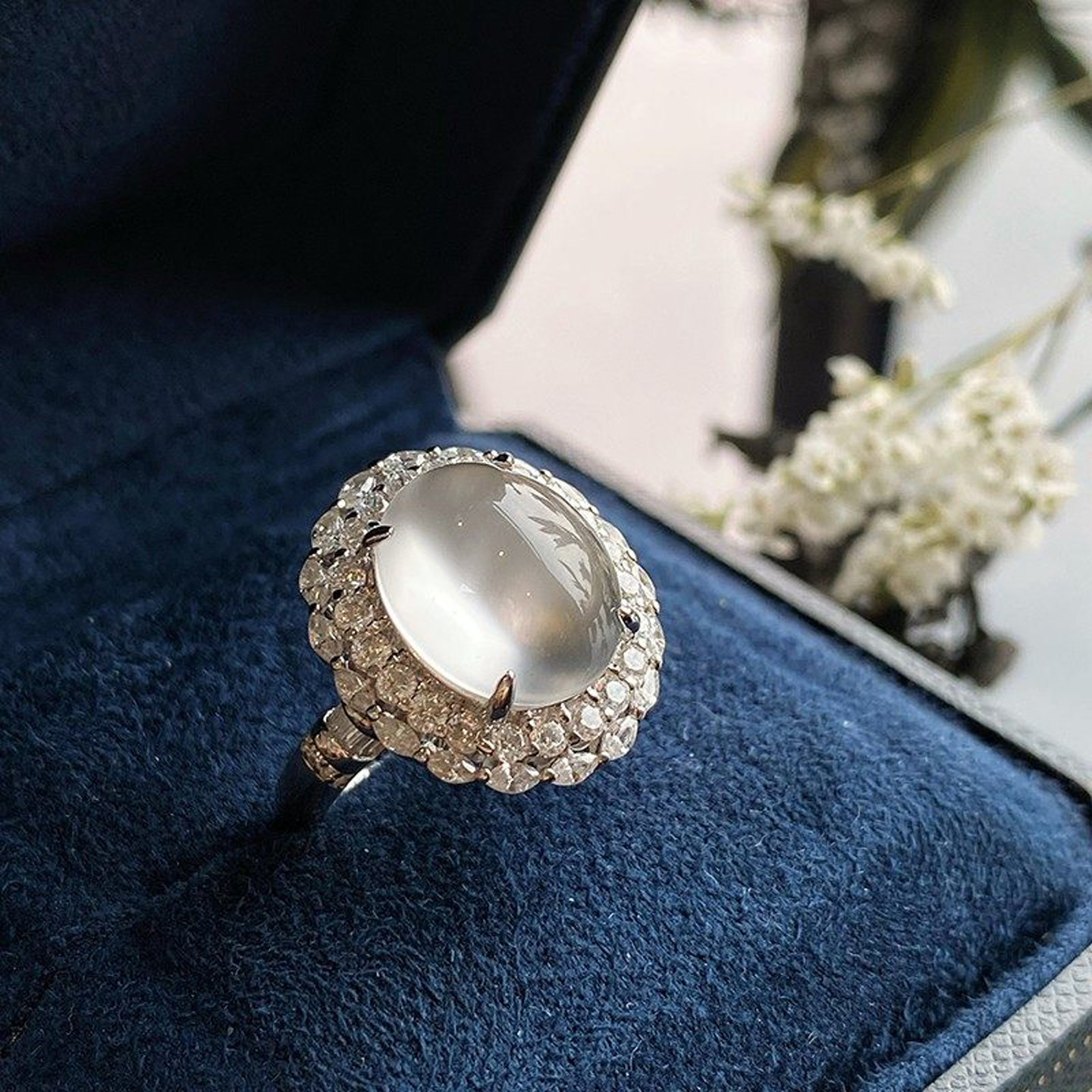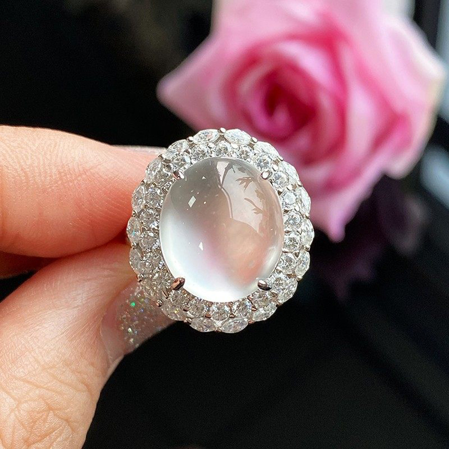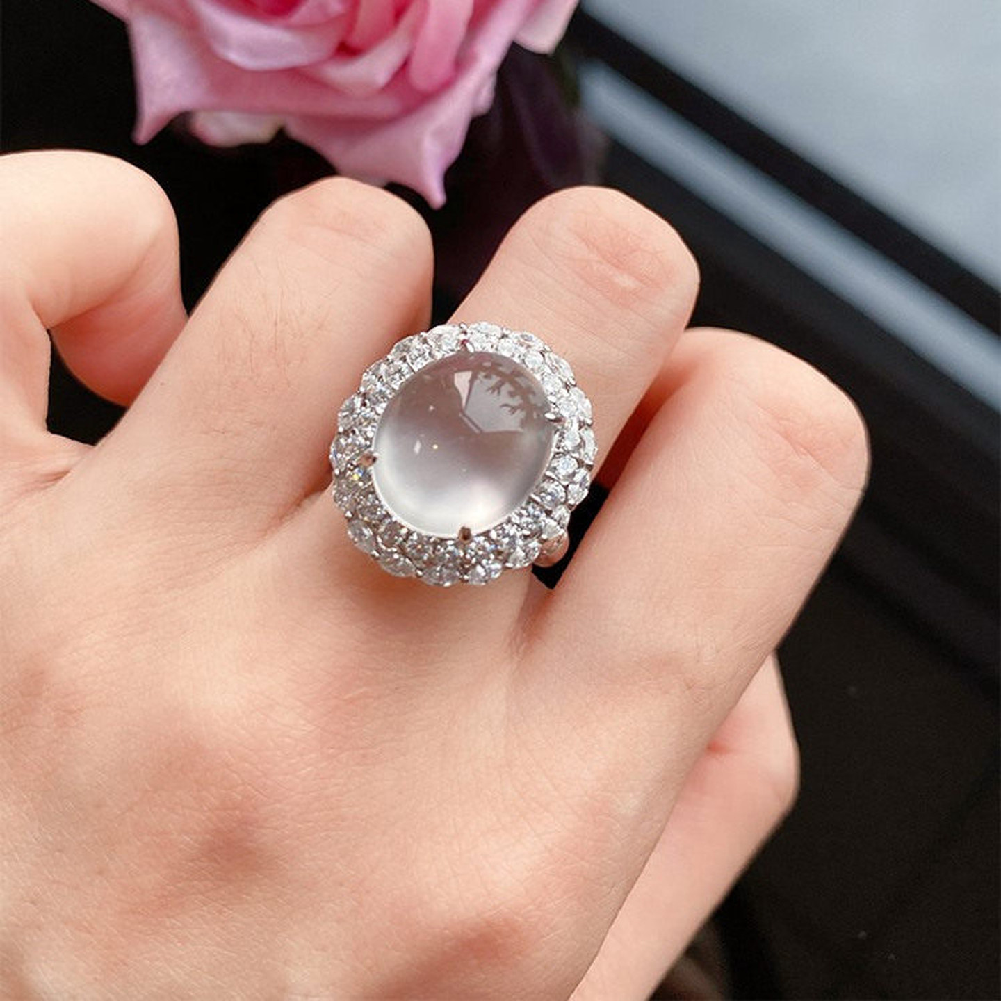 VISING珠宝天然水沫玉缅甸石英岩玉鸽子蛋戒指强莹光S925银