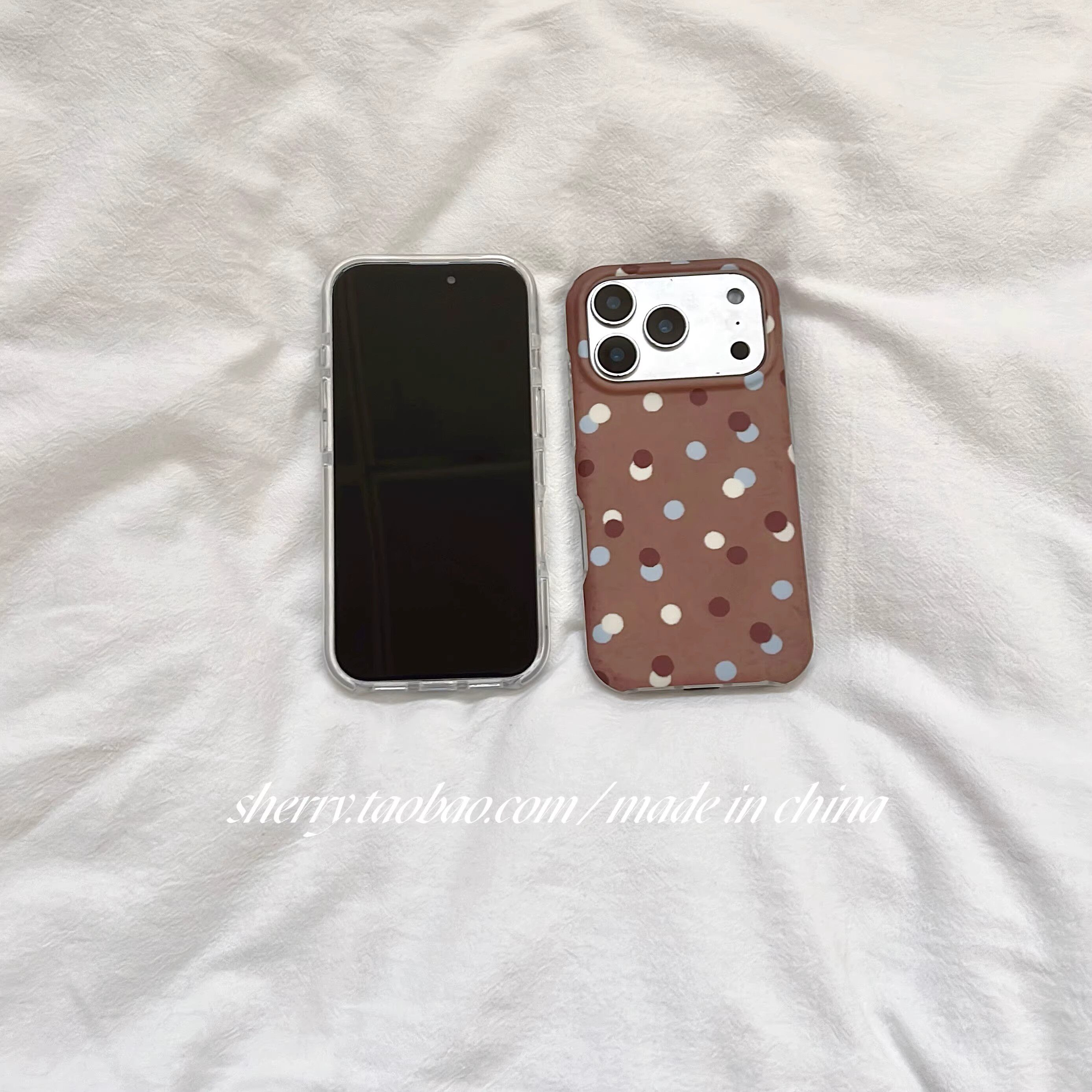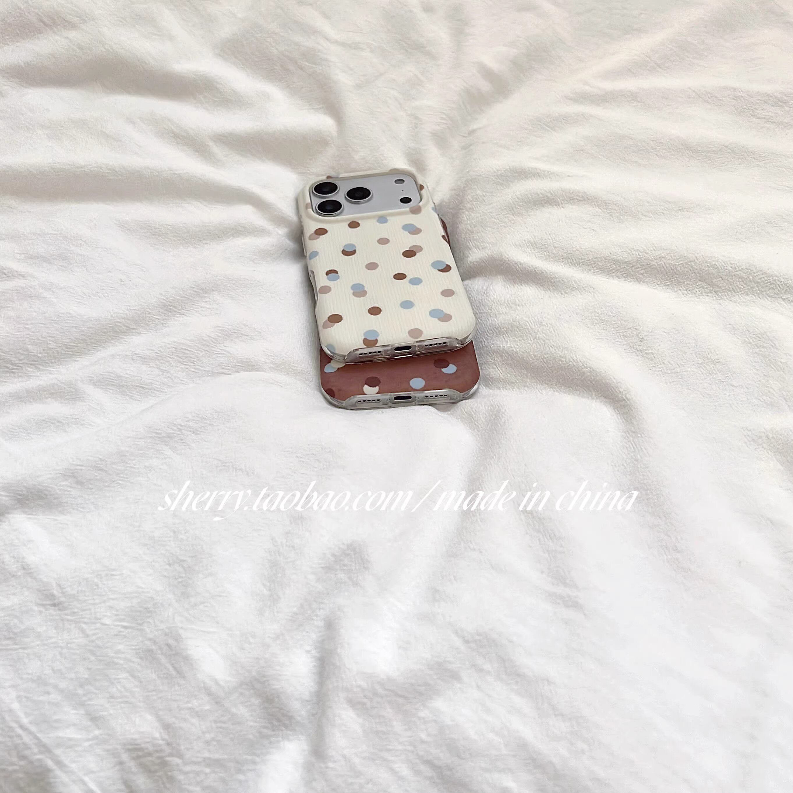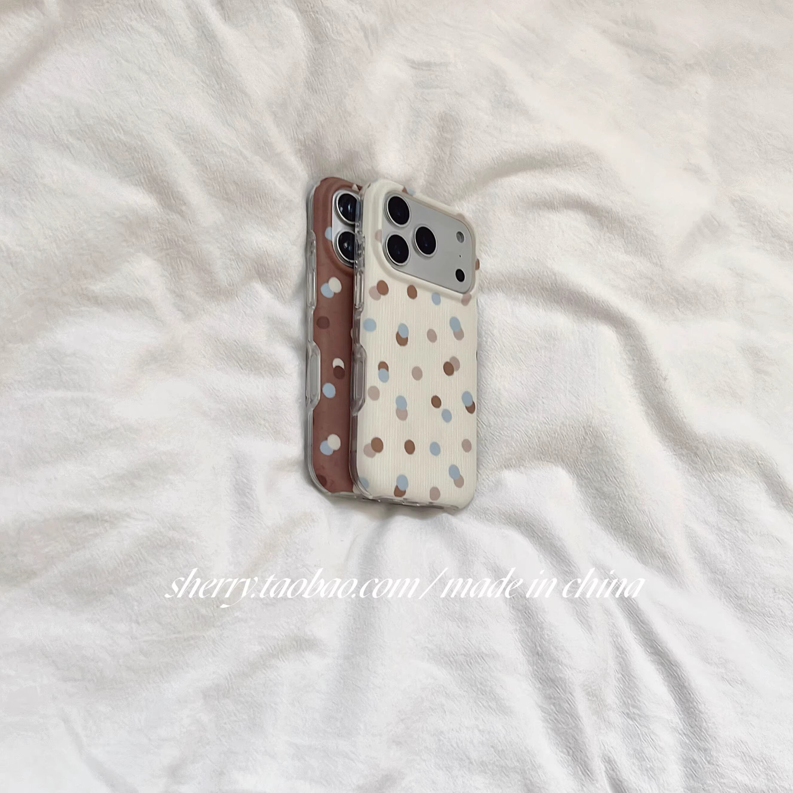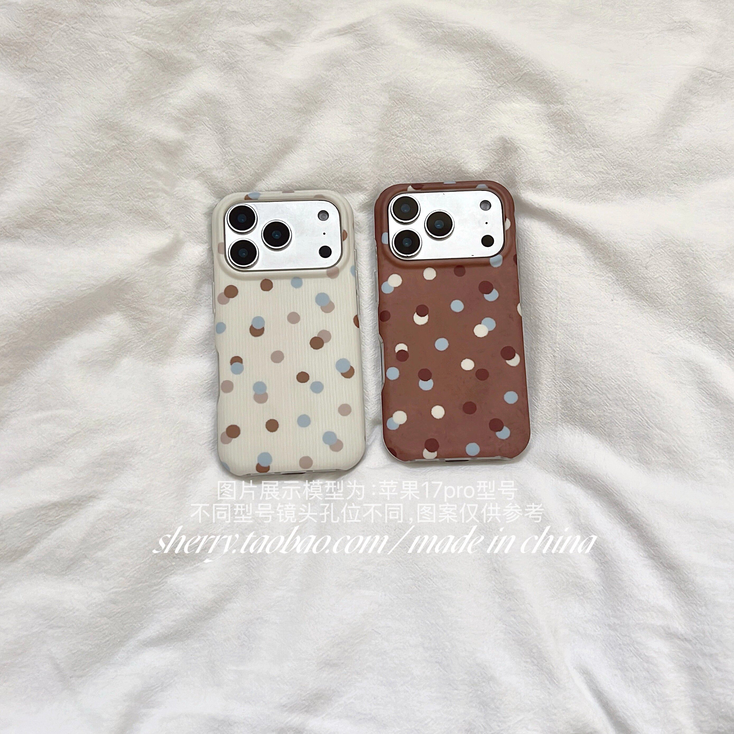 日本DEMIU白棕撞色波点高级适用于苹果17ProMax手机壳iPhone16Pro小众少女心15简约14小清新卡通