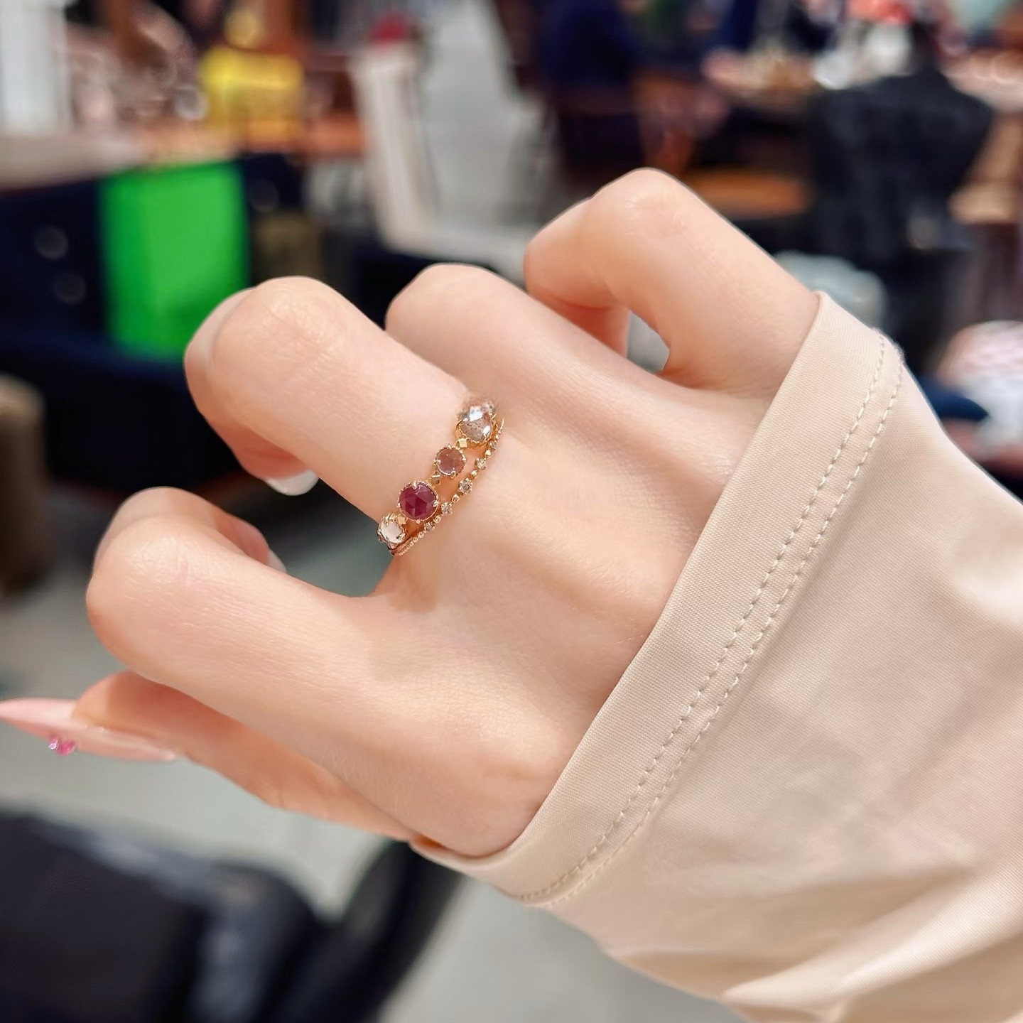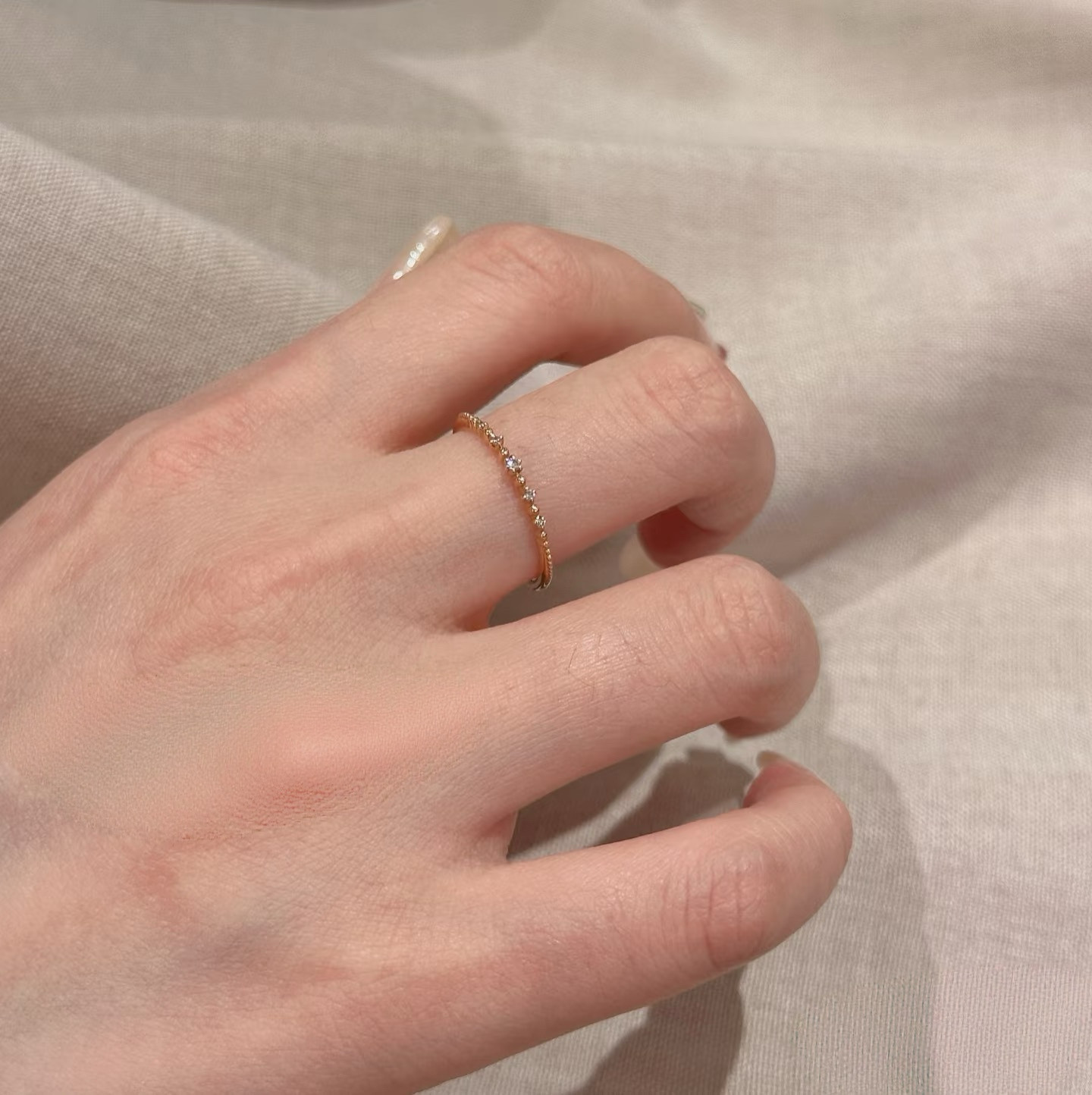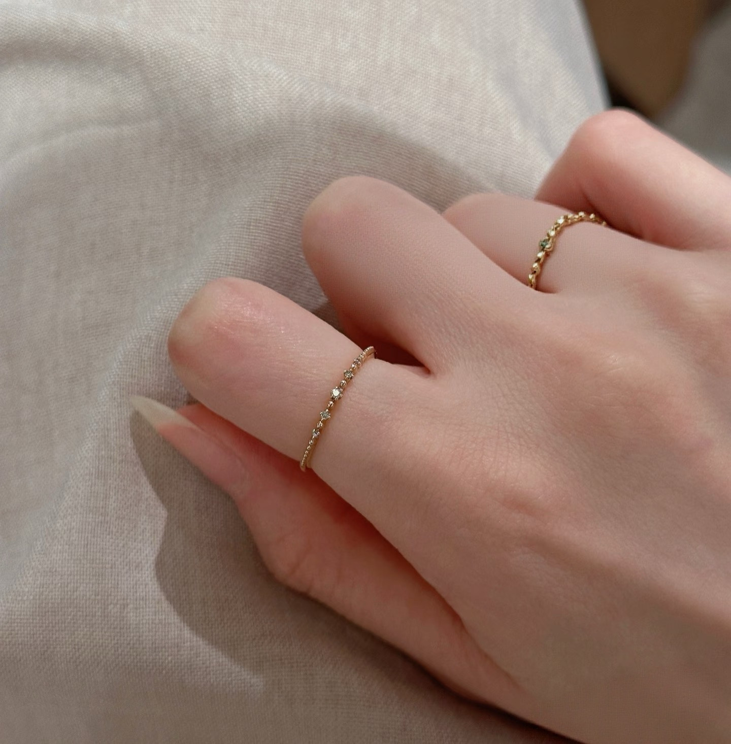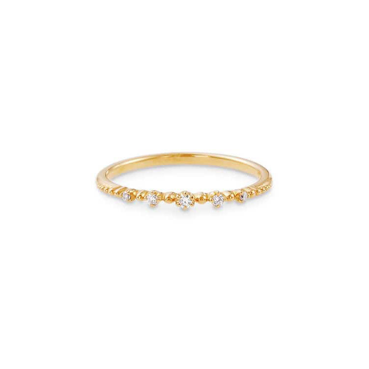 nojess同款 极细经典简约璀璨五颗锆石925纯银镀金戒指 叠戴女