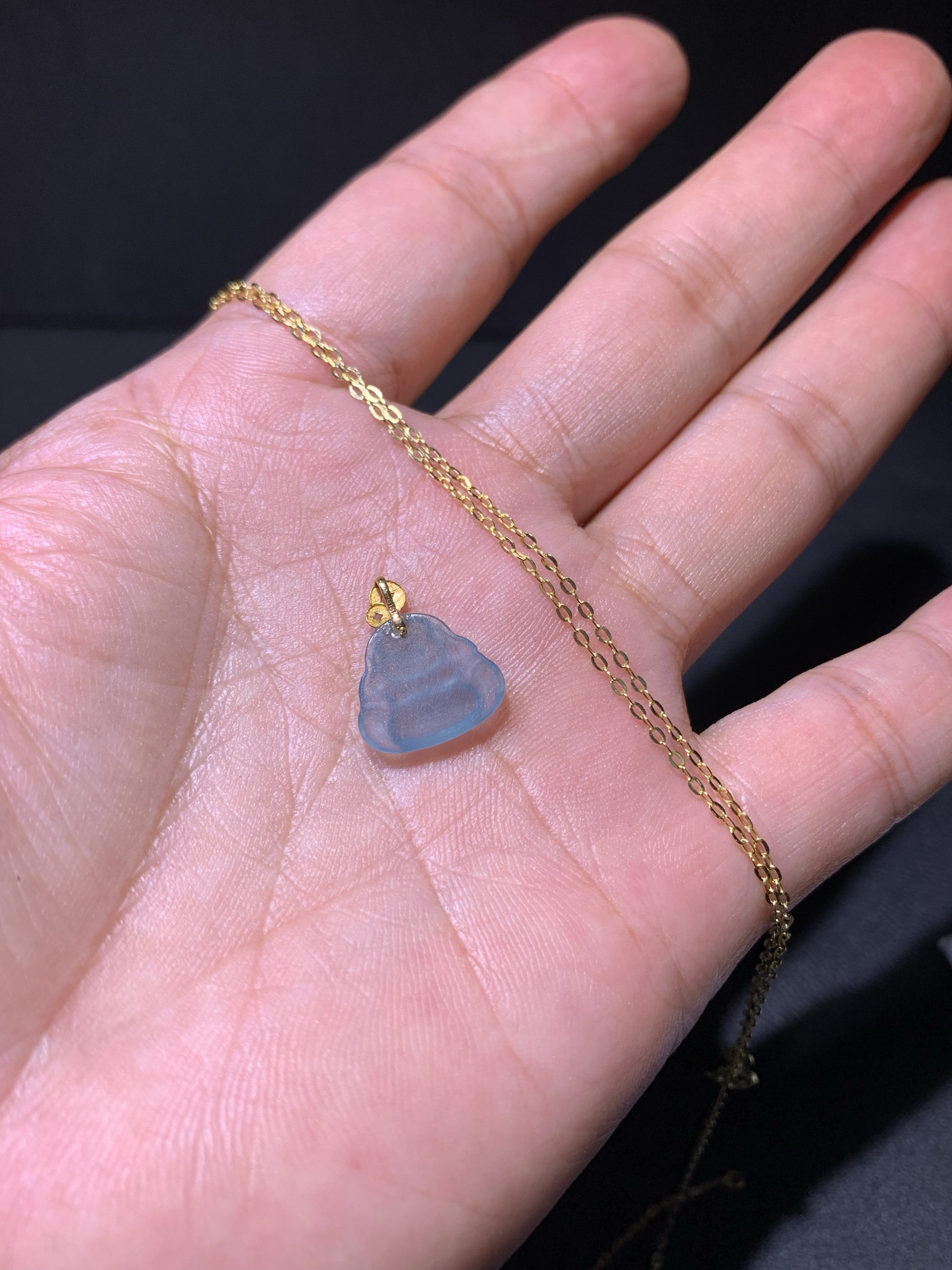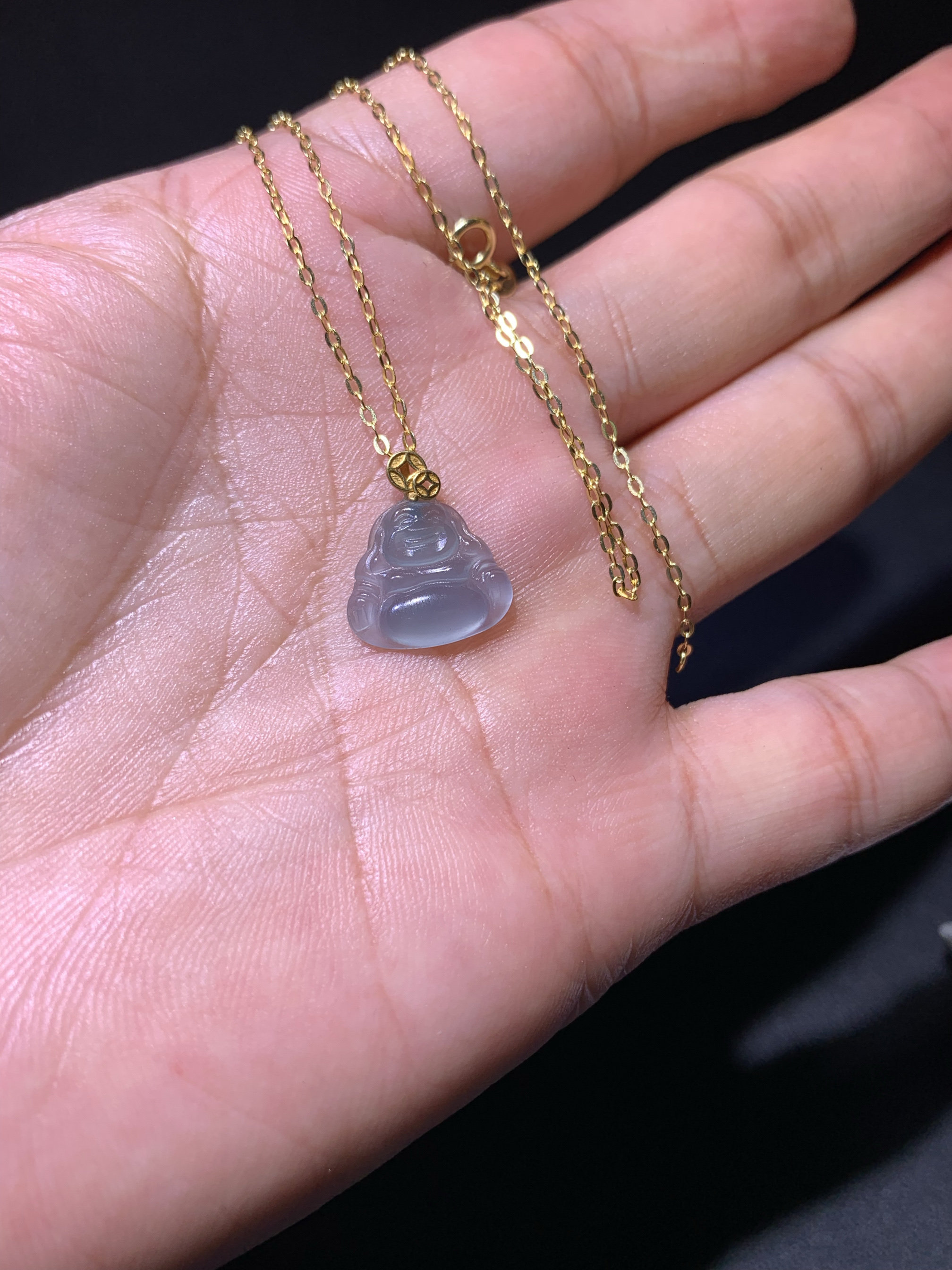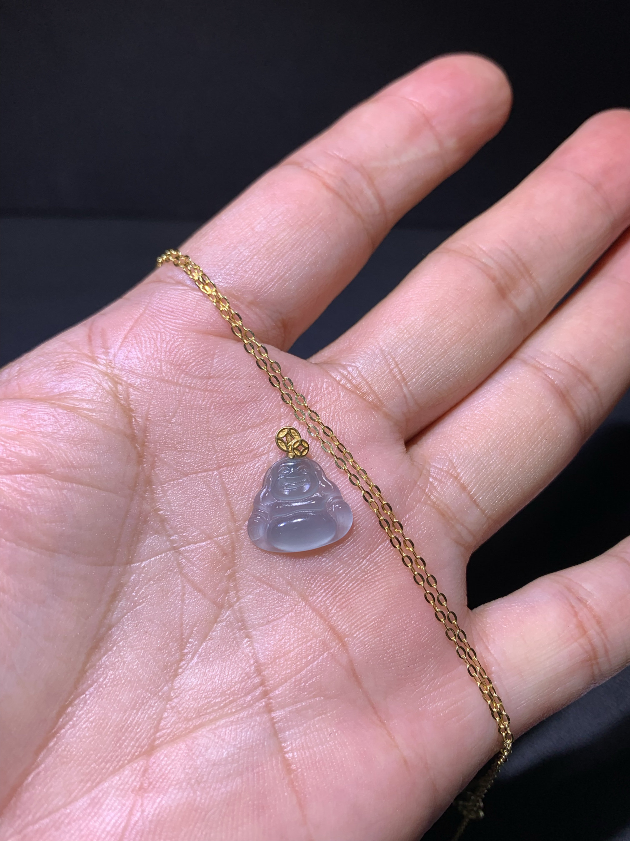岁岁纳福天然翡翠A货佛公18k金扣吊坠玉佛小精美锁骨弥勒笑佛挂