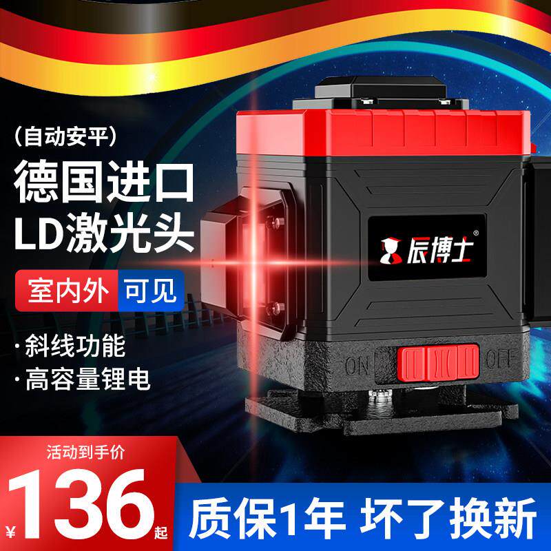 新品户外红光高精度强光细线w4线水平仪泥工程贴地墙仪自动调平打