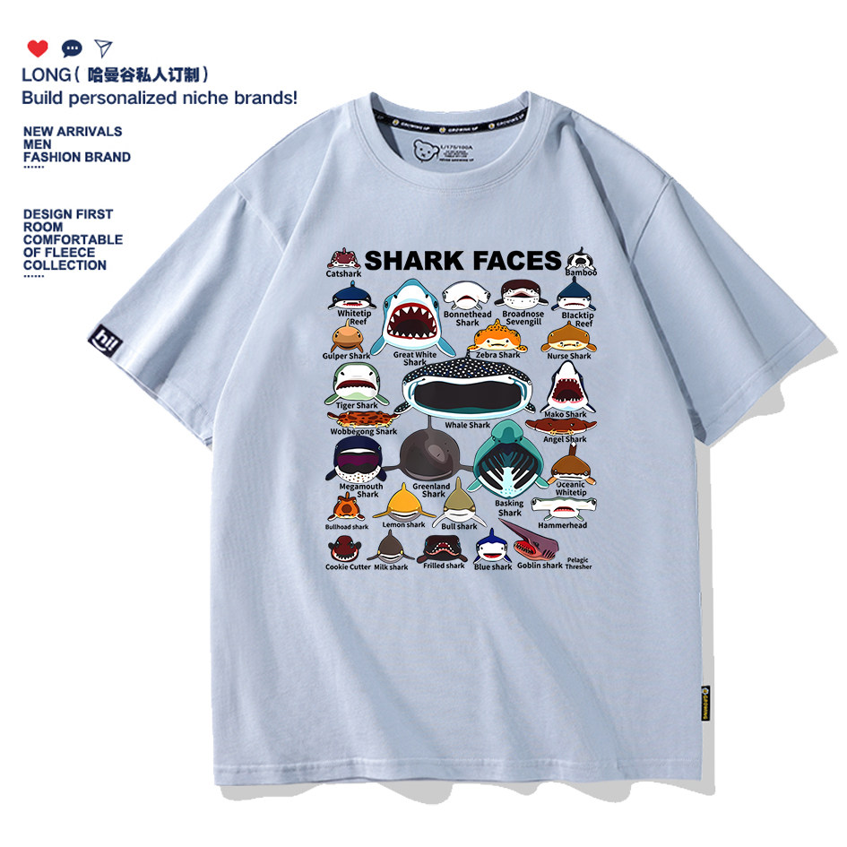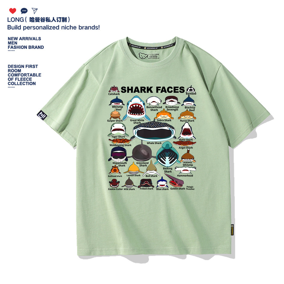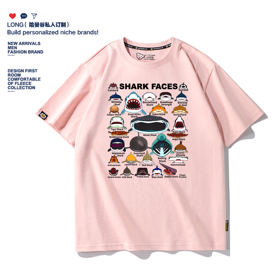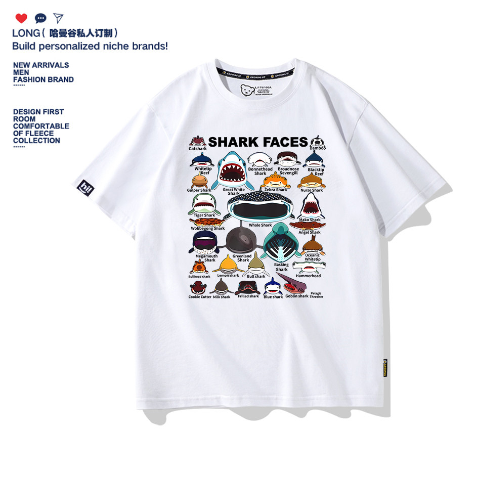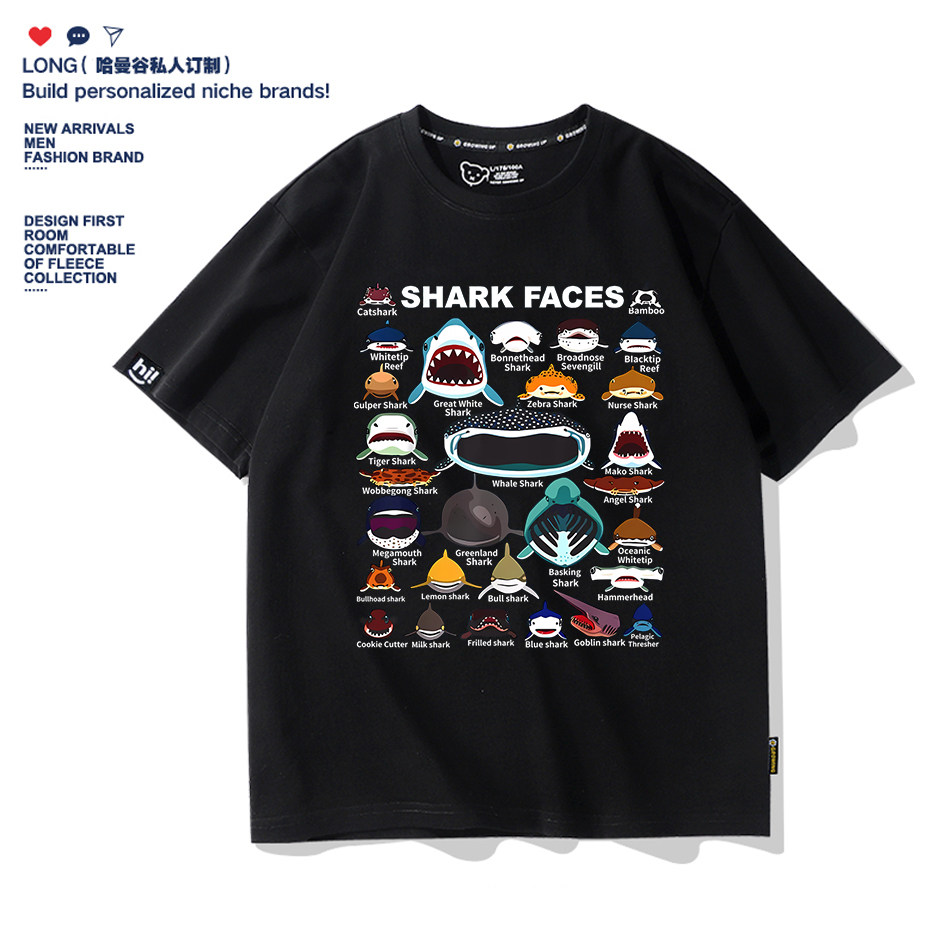 海洋动物鲨鱼SHARK艺术卡通短袖T恤纯棉男女宽松亲子童装半袖定制