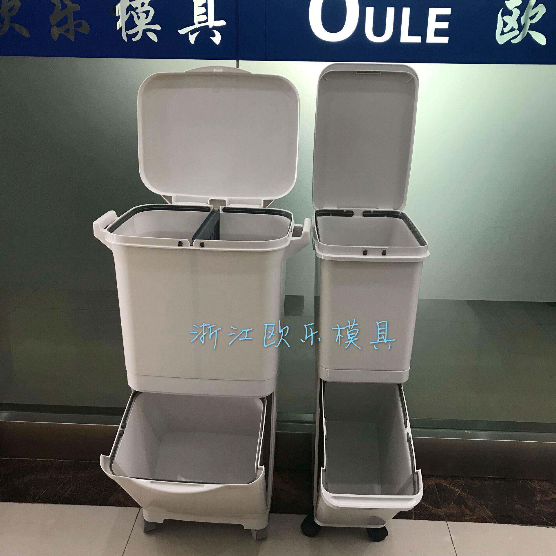 开发38L/45L分类垃圾桶模具 干湿分离免费设计垃圾桶模具注塑件