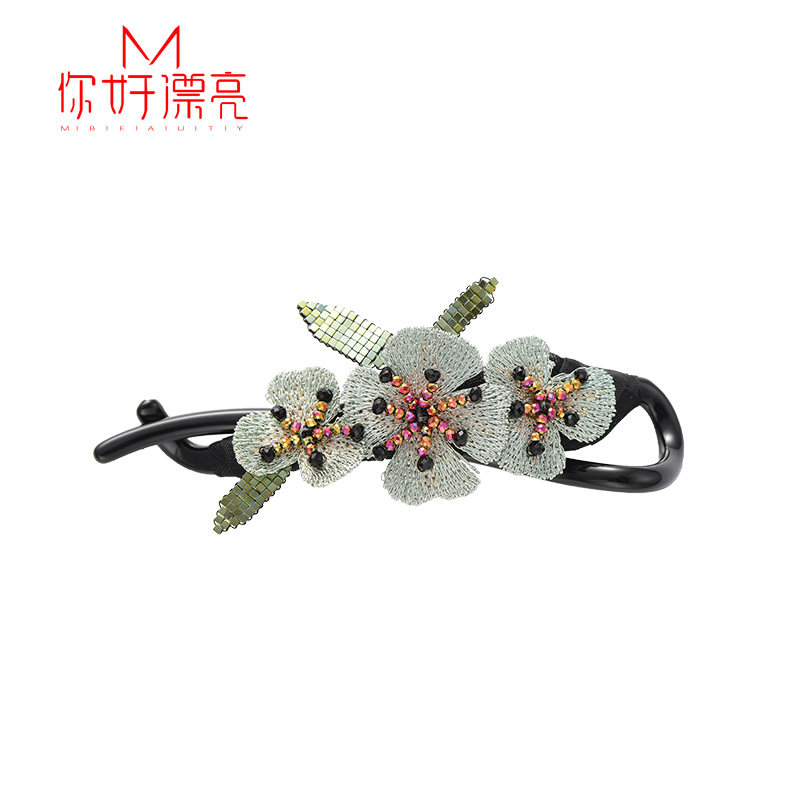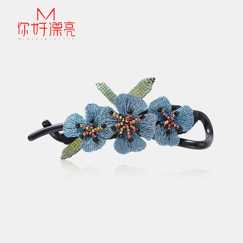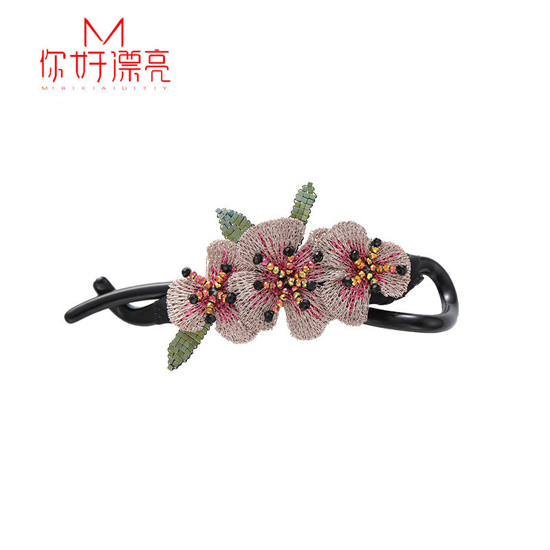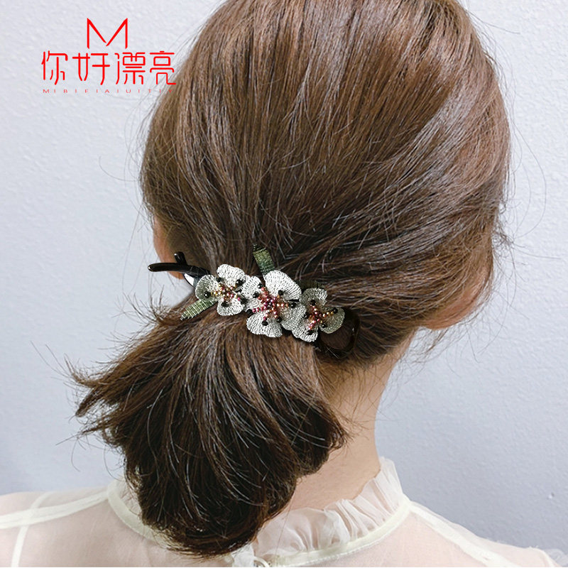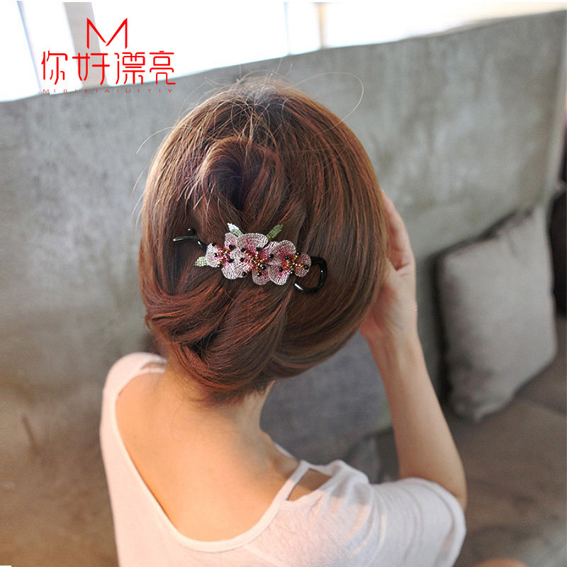 布艺花朵香蕉夹竖夹马尾发夹优雅气质盘发造型发卡头饰丸子头神器