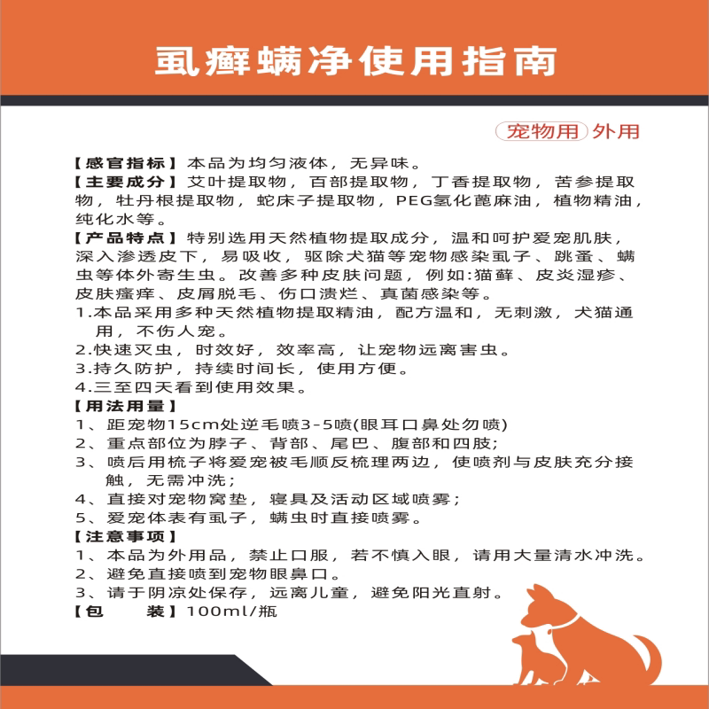 宠物猫狗虱螨净去虱螨虫跳蚤皮肤病真菌感染皮炎湿疹掉毛起赖喷剂