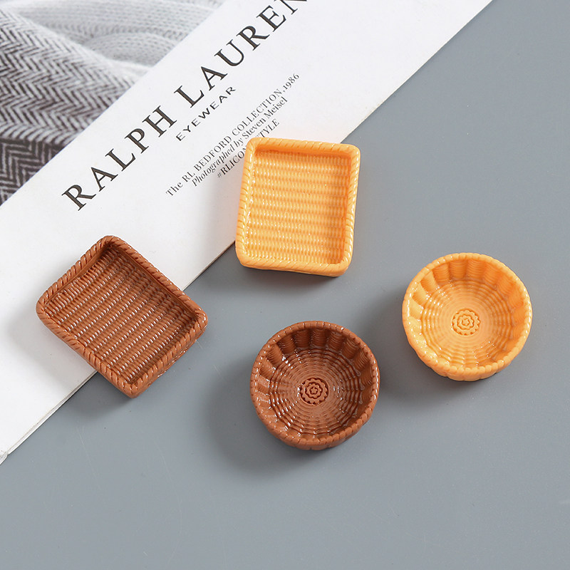仿真竹编篮筐托盘树脂配件手工奶油胶diy微缩面包食玩小摆件材料