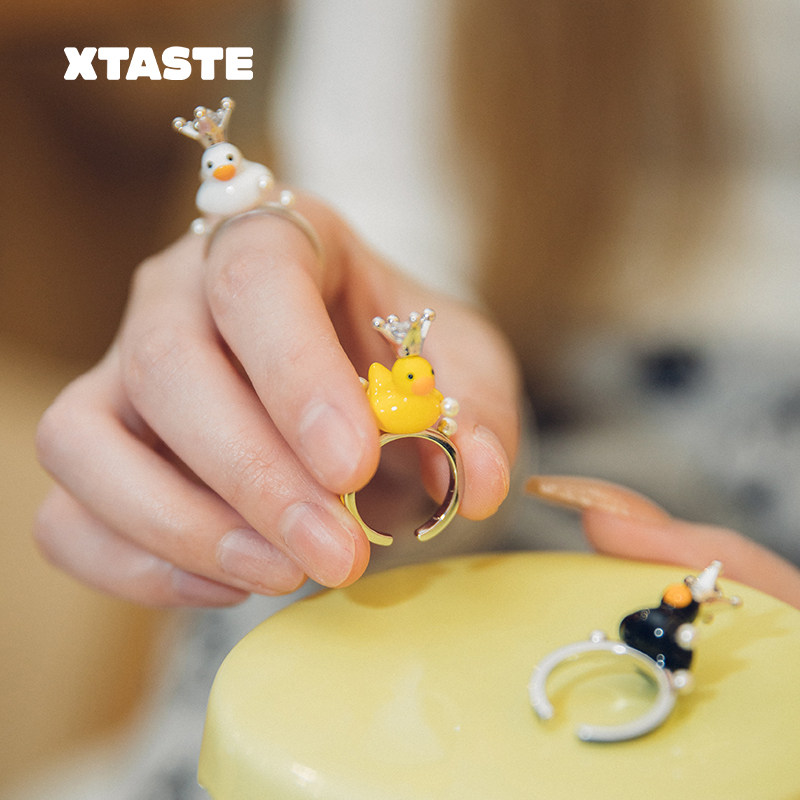 XTASTE FWISH飞未夕 珍珠公主鸭珐琅戒指开口设计原创可爱女生款