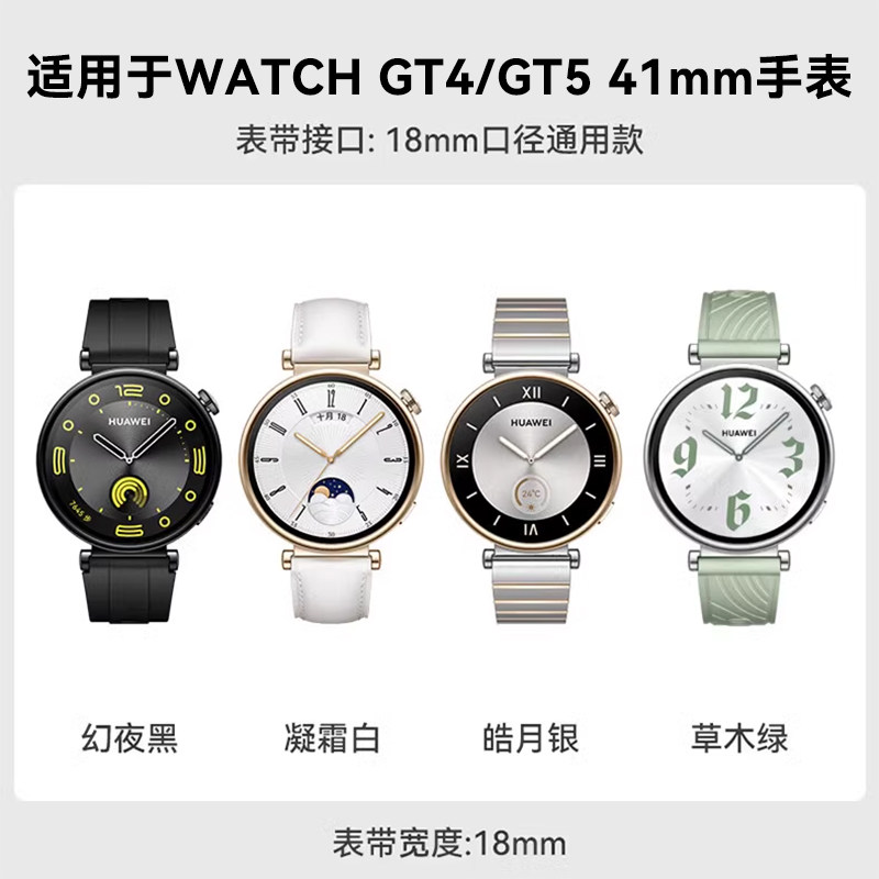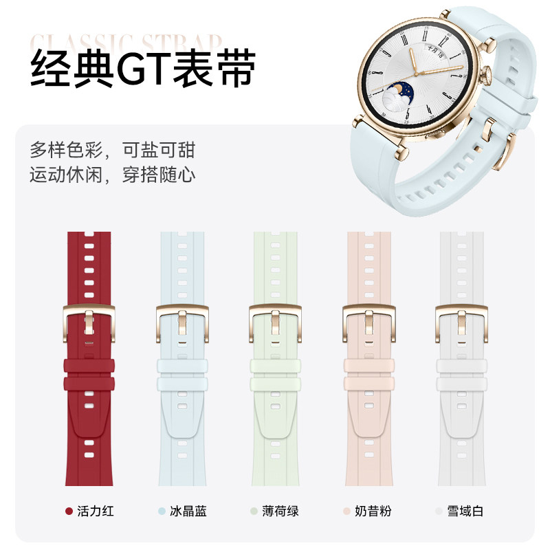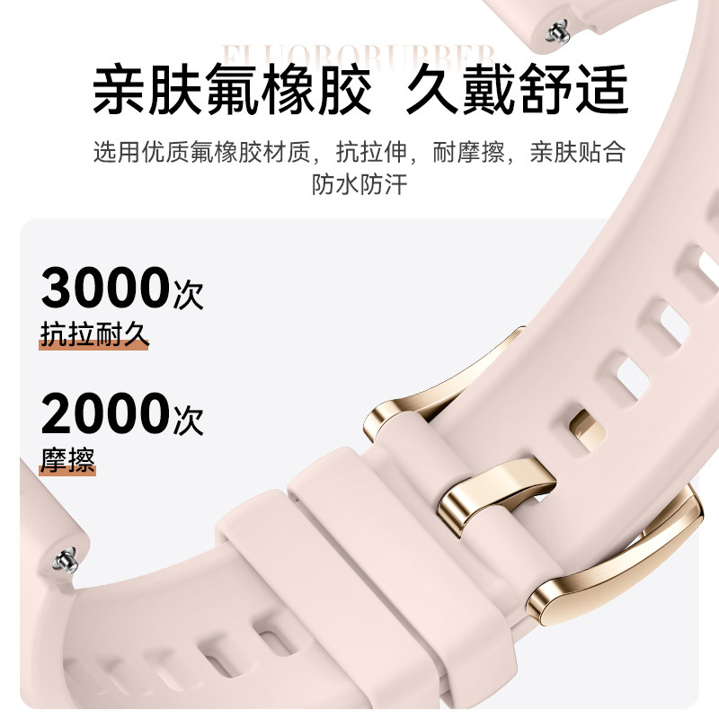适用华为GT4/5手表表带女款18mm官方同款氟橡胶腕带gt6/5Pro/watch5女士经典高级感运动软胶防水透气替换带新