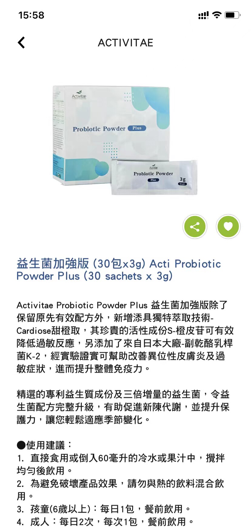 Activitae 益生菌加强版 每日餐前1包 inovital 改善肠胃