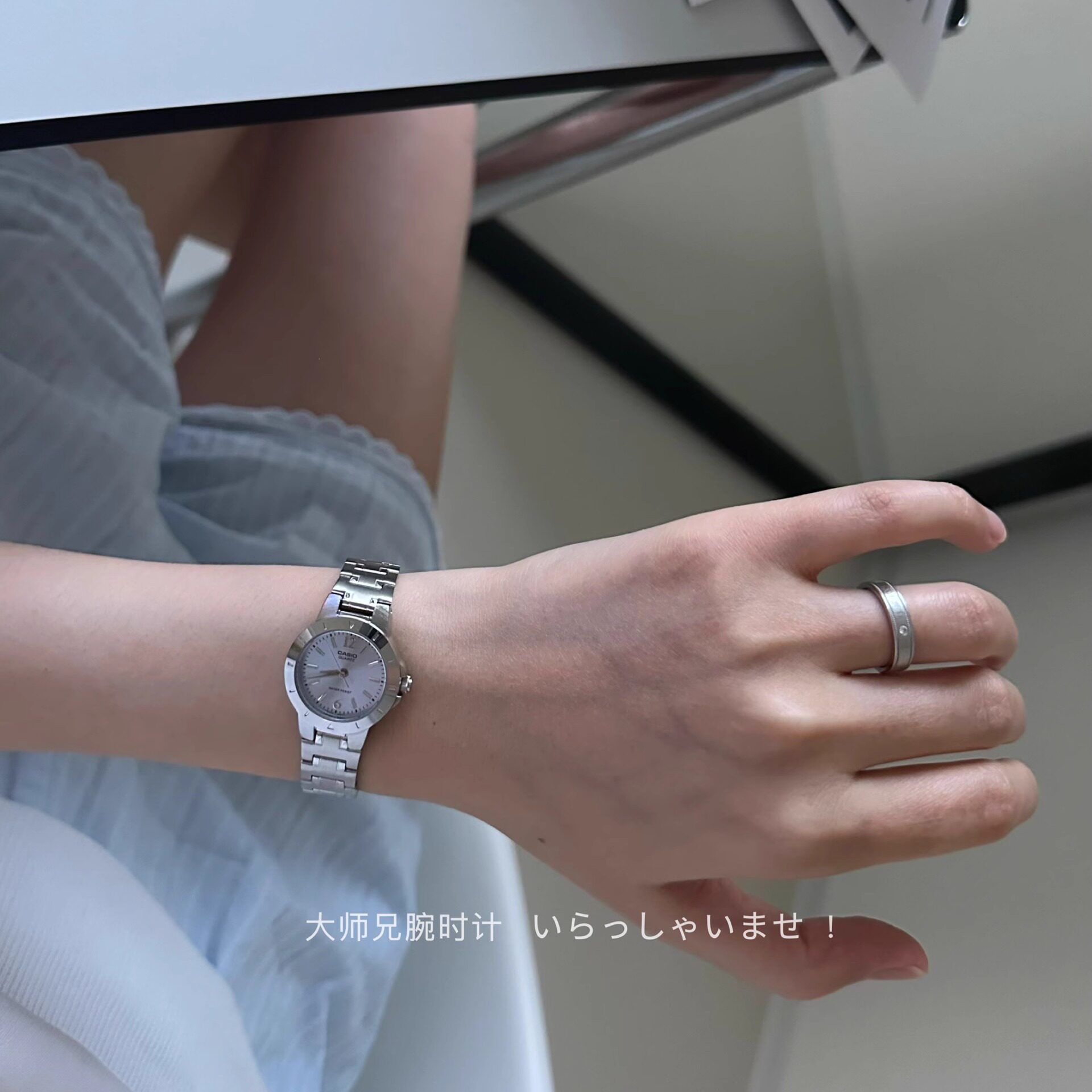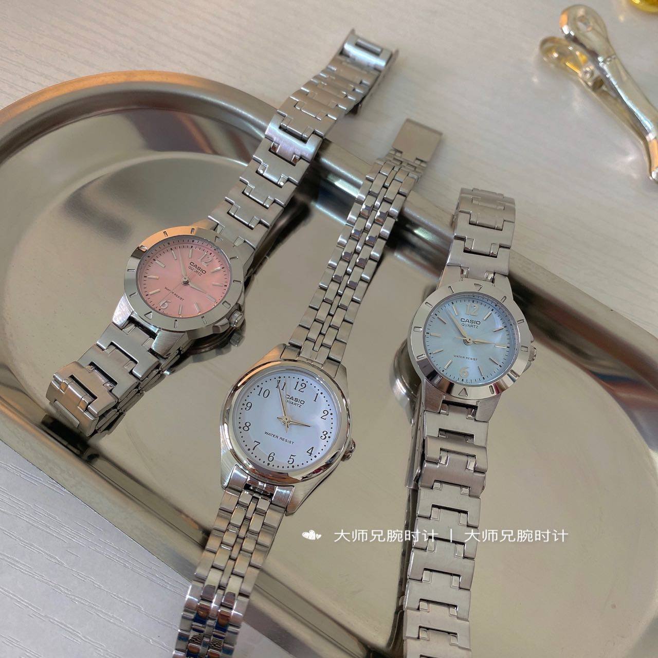 日本卡西欧Casio碎碎冰网红手表钢带小圆表女 数字/粉蓝简约气质