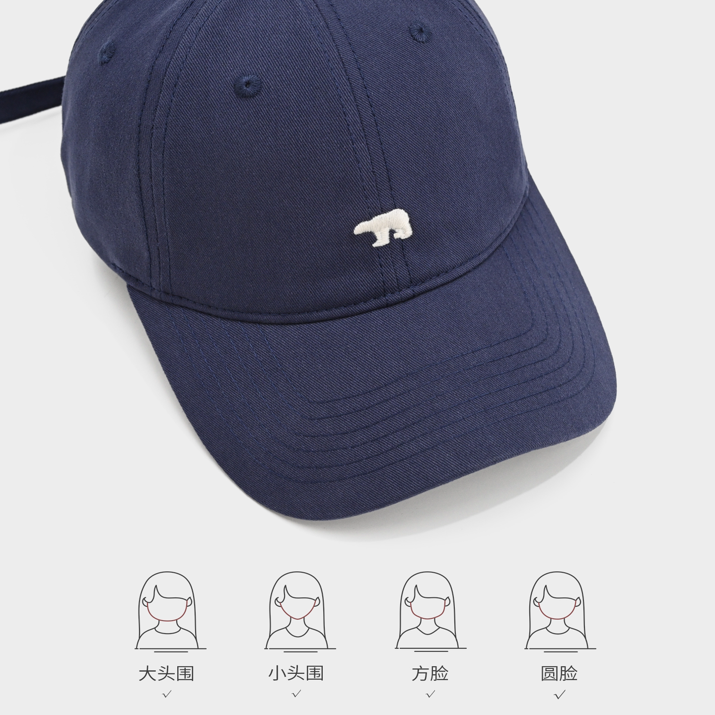 2026秋冬季新款北极熊时尚棒球帽男大头围宽檐显脸小遮阳鸭舌帽女
