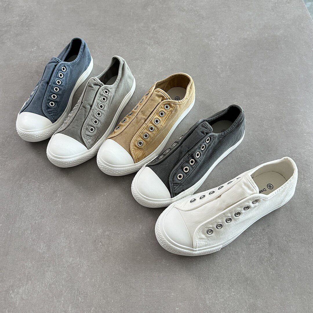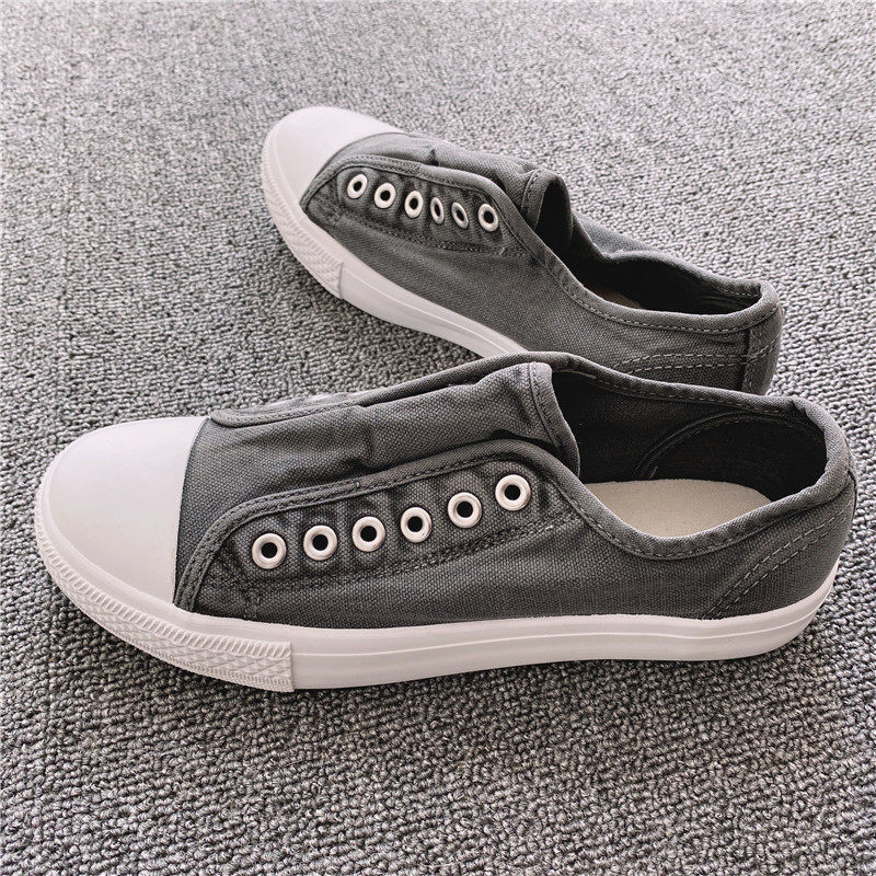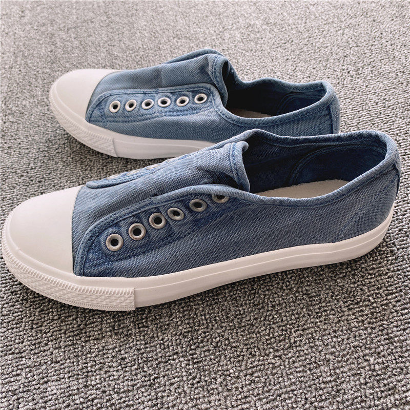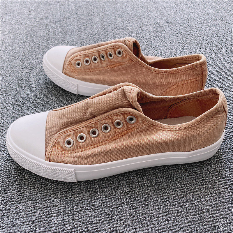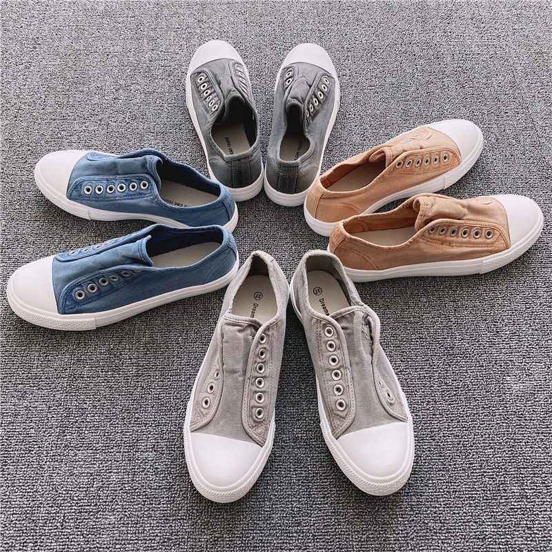 2026韩版一脚蹬帆布鞋低帮百搭懒人鞋舒适软底休闲女鞋防滑底多扣