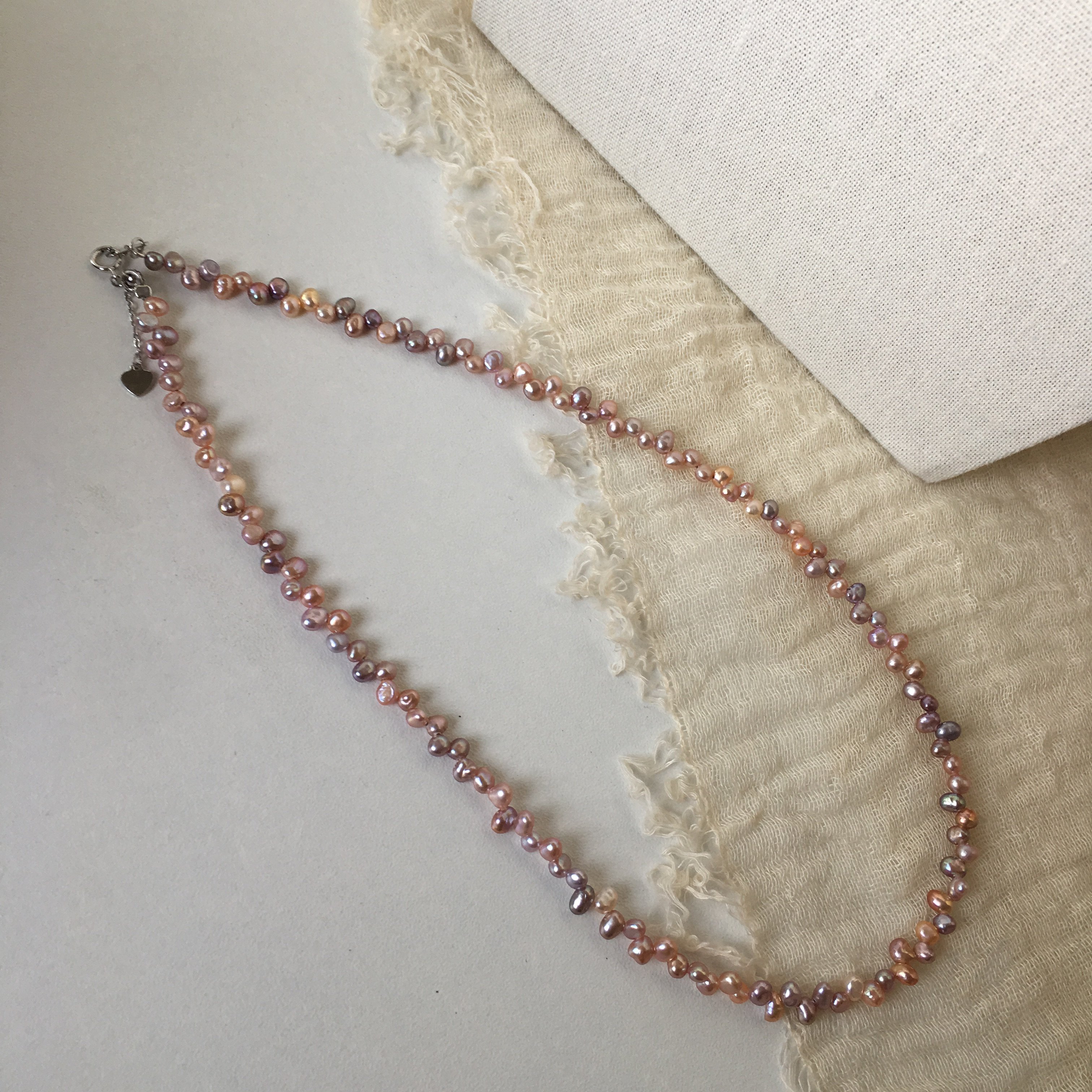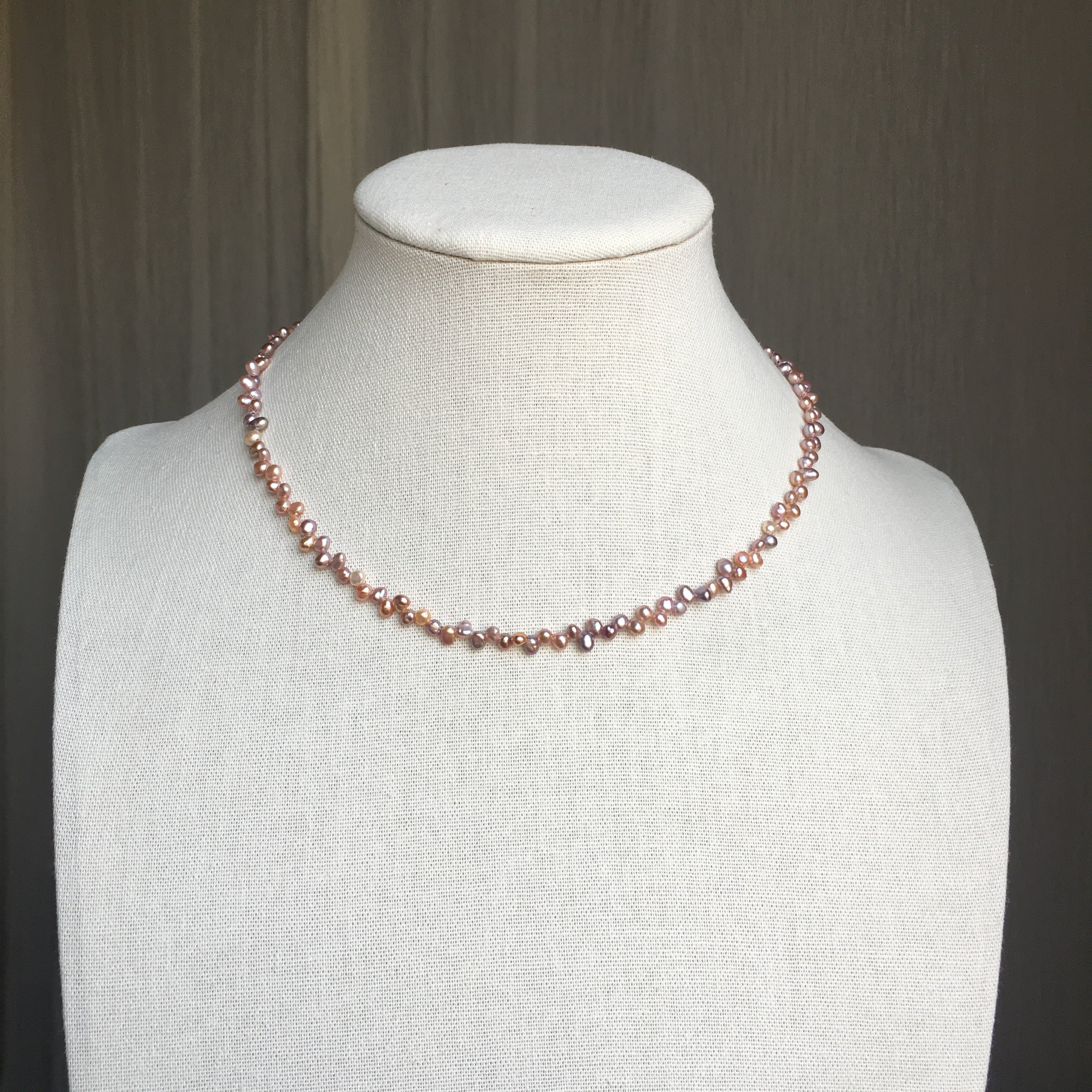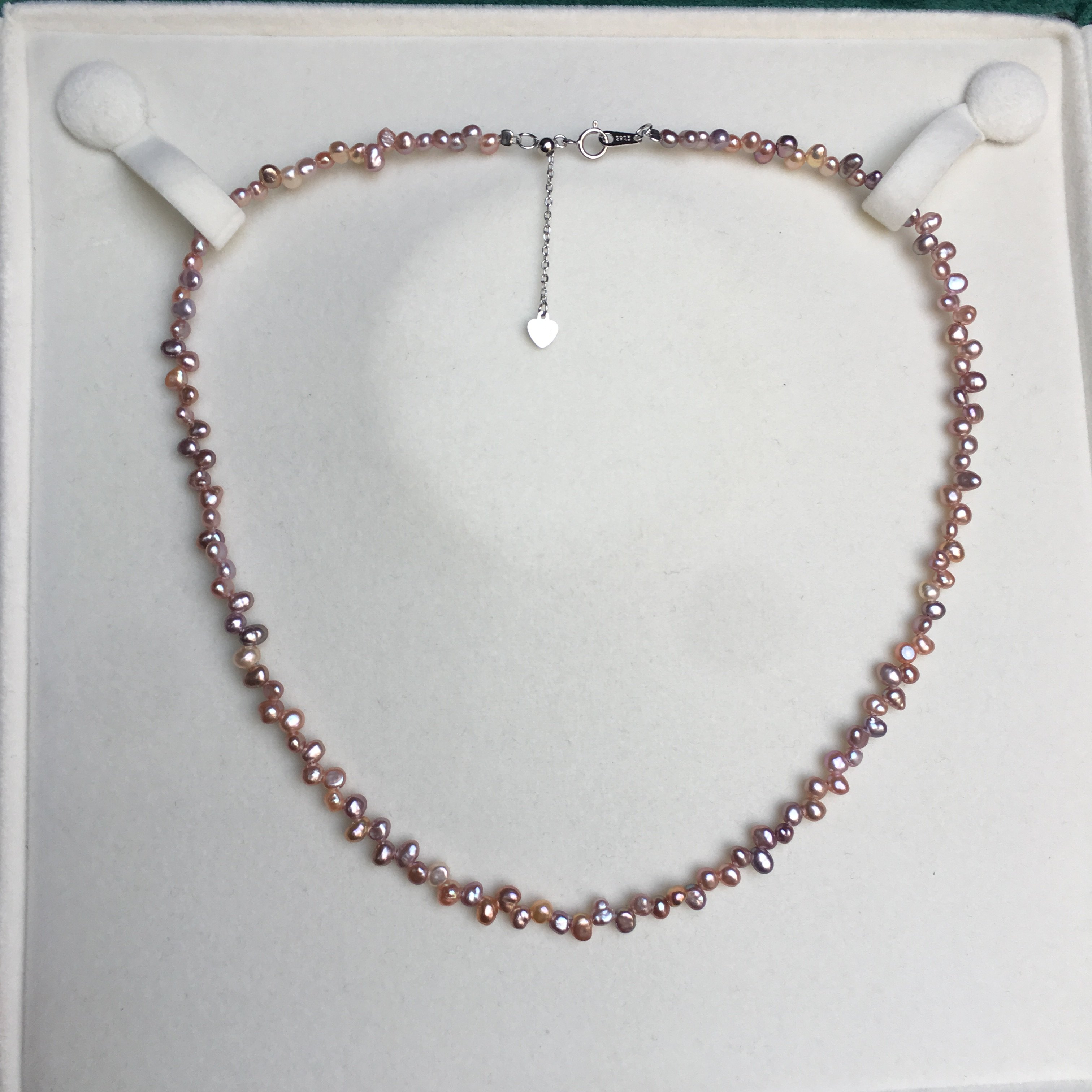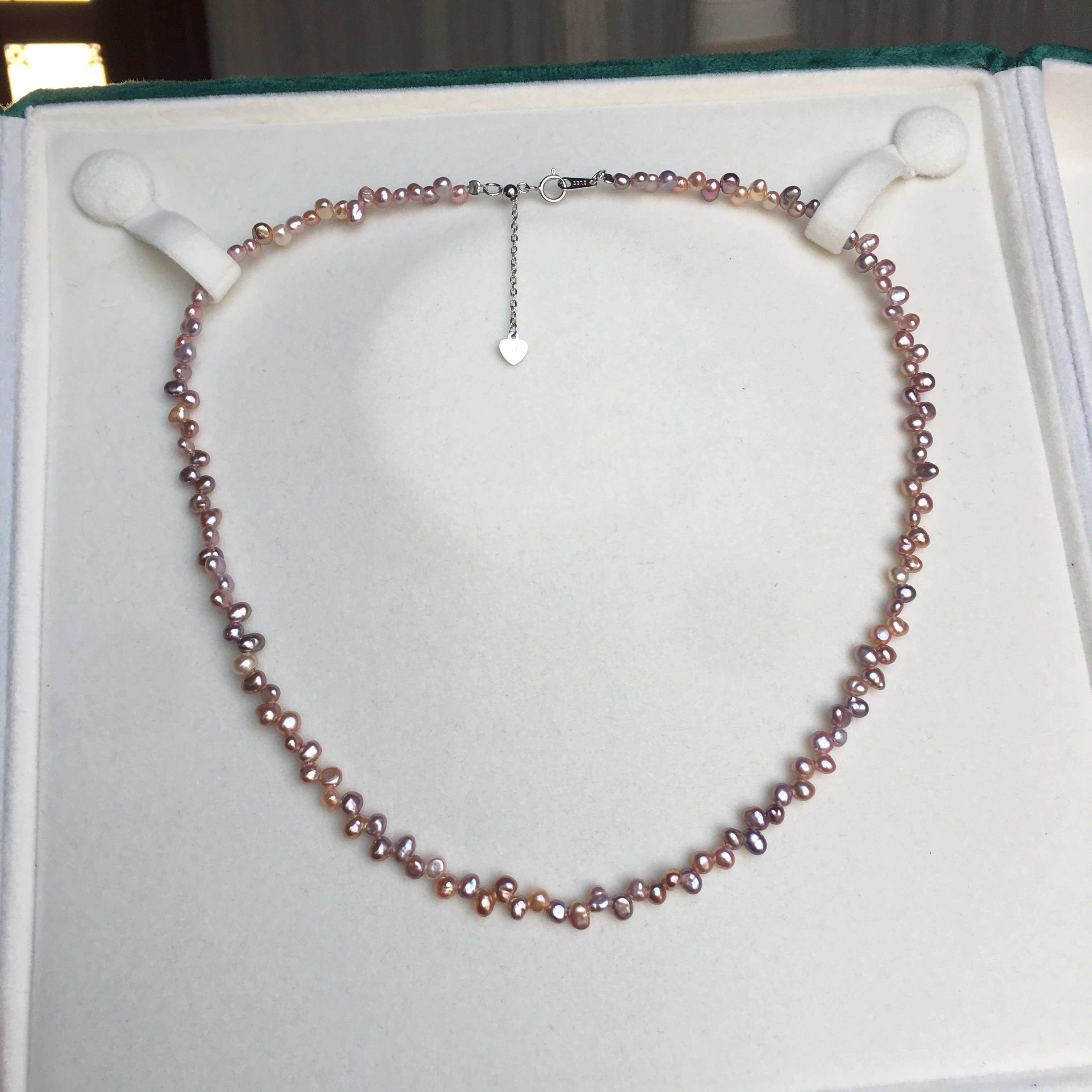 稀有小点位3mm糖果色花瓣项链二八孔天然珍珠精致颈链迷你巴洛克