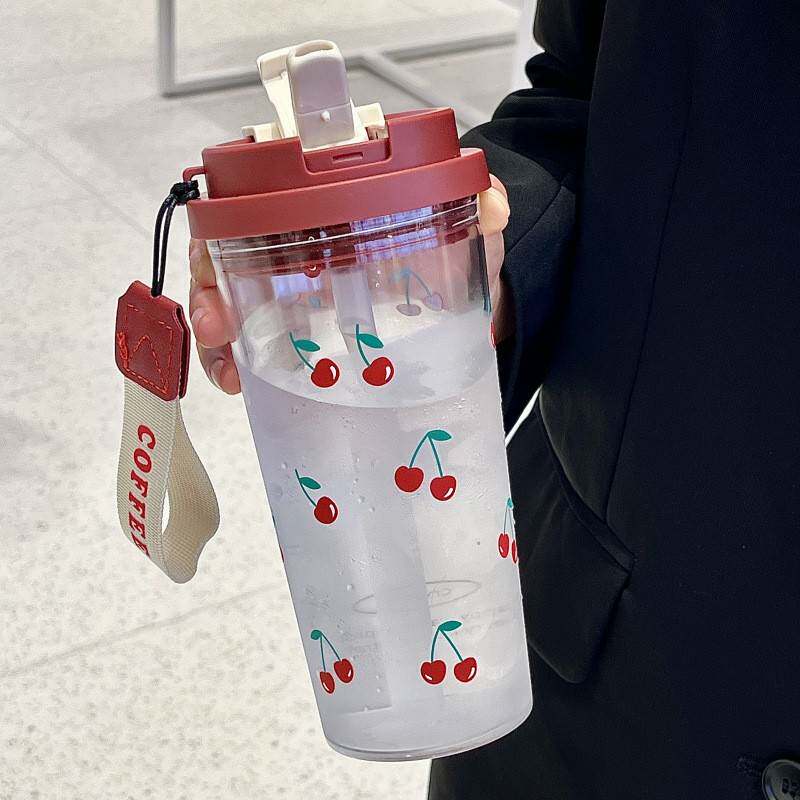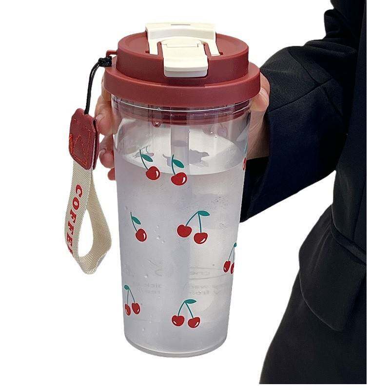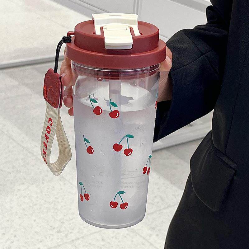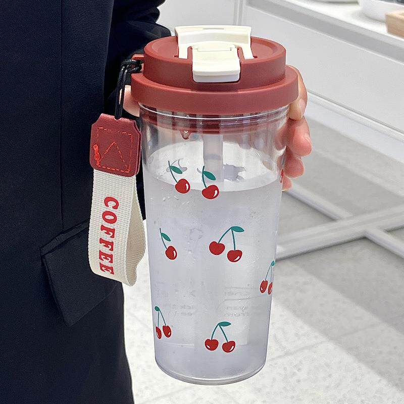 双饮吸管水杯花茶杯随手杯便携带吸管耐高温塑料杯大容量礼品杯子