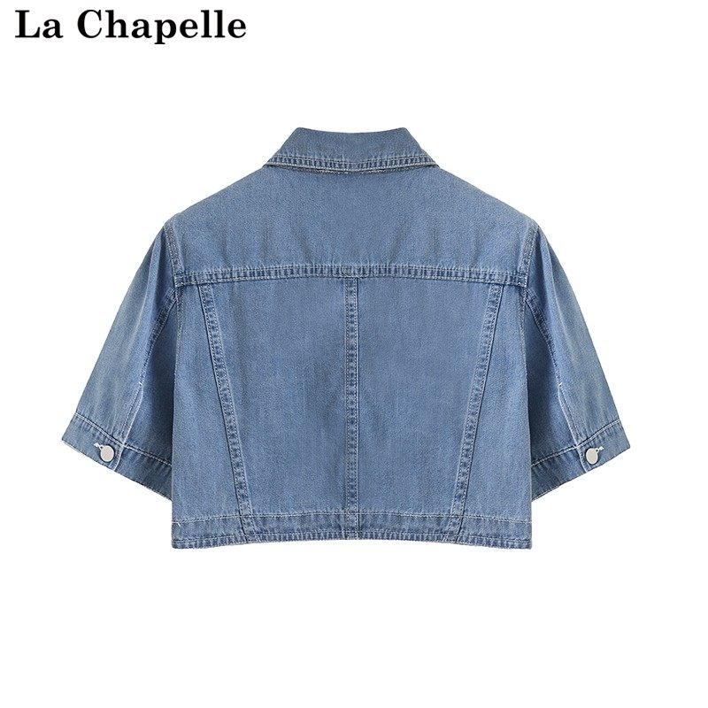 拉夏贝尔/La Chapelle夏季轻薄女短袖牛仔外套小个子短款披肩上衣