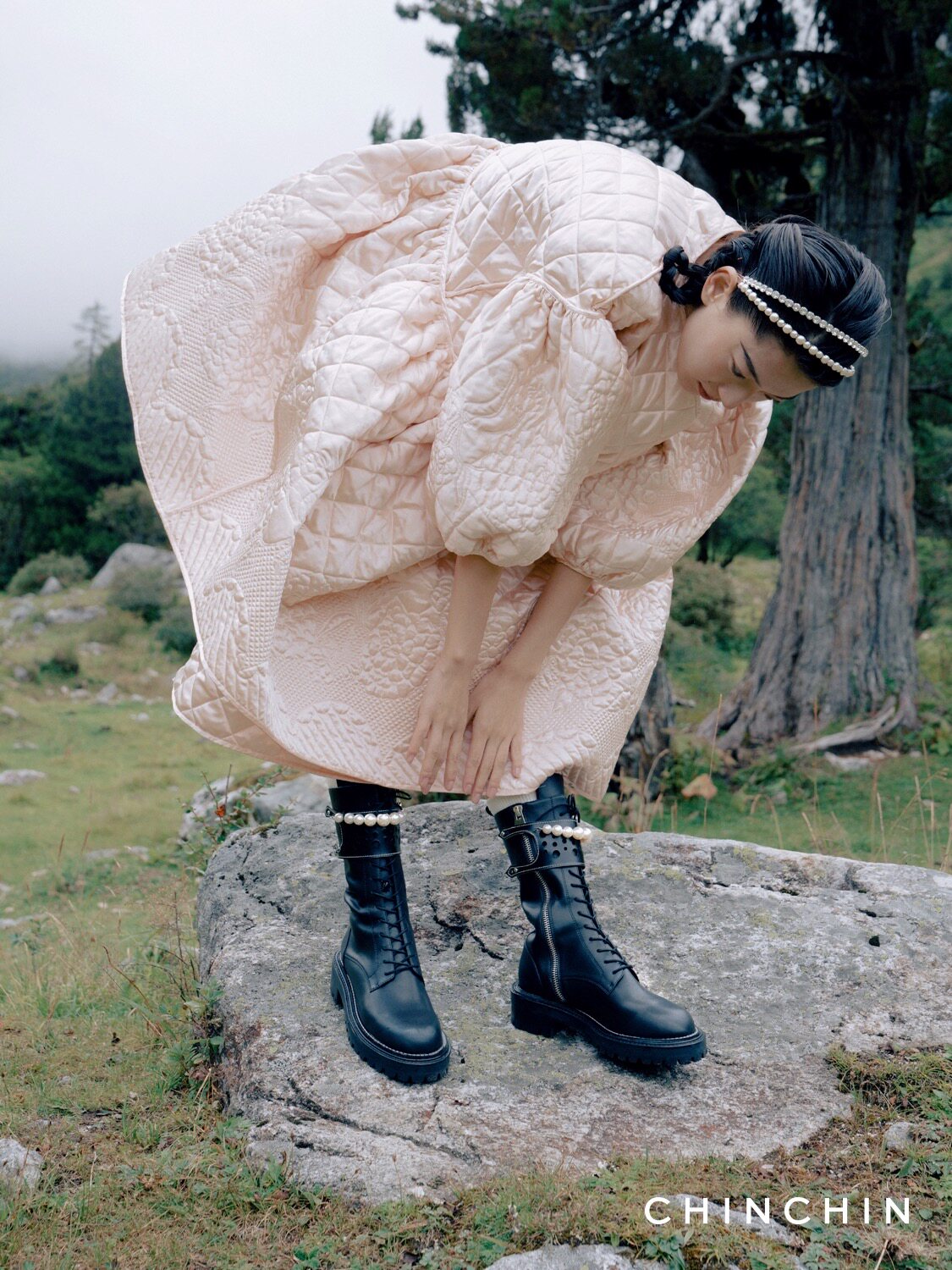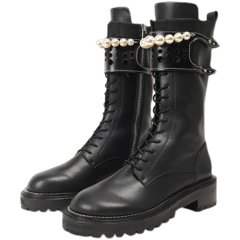 CHINCHIN官方原创设计师鞋履|赵露思同款珍珠条带马丁靴中筒靴