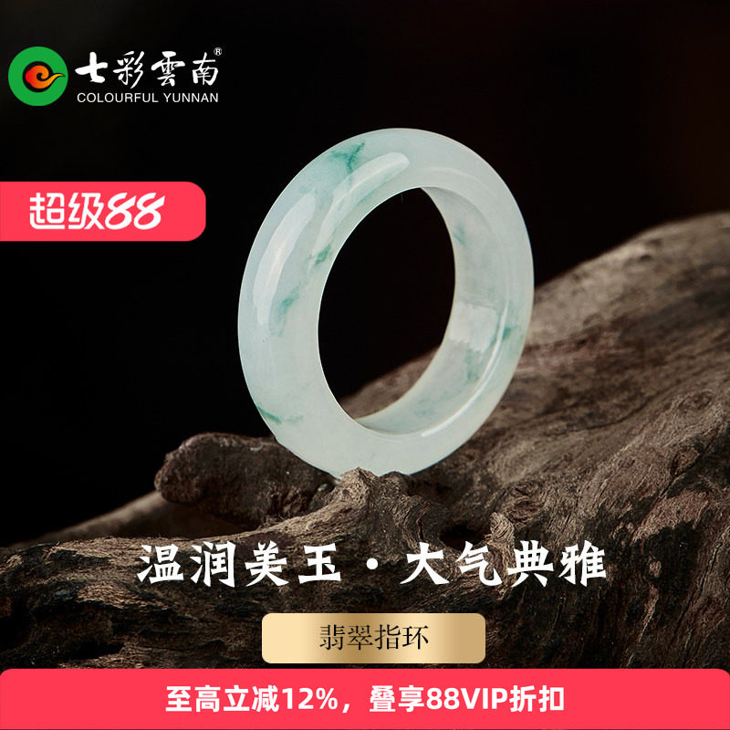 七彩云南天然缅甸翡翠冰种飘蓝花戒指翡翠玉戒指男女款情侣对戒