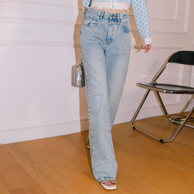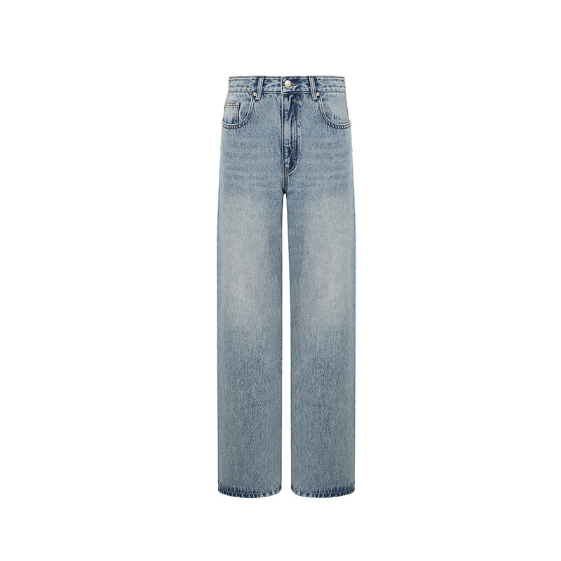 Maison Wester春季流行通勤前斗异型直筒裤阔腿牛仔裤可露丽穿搭