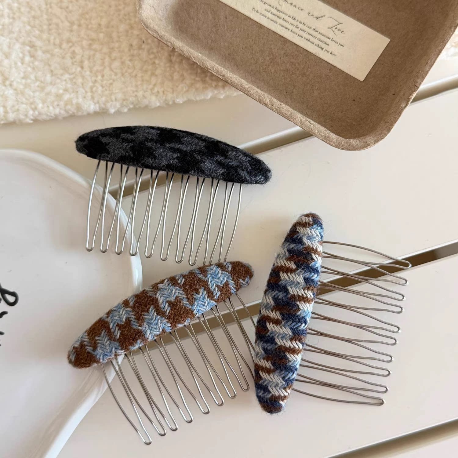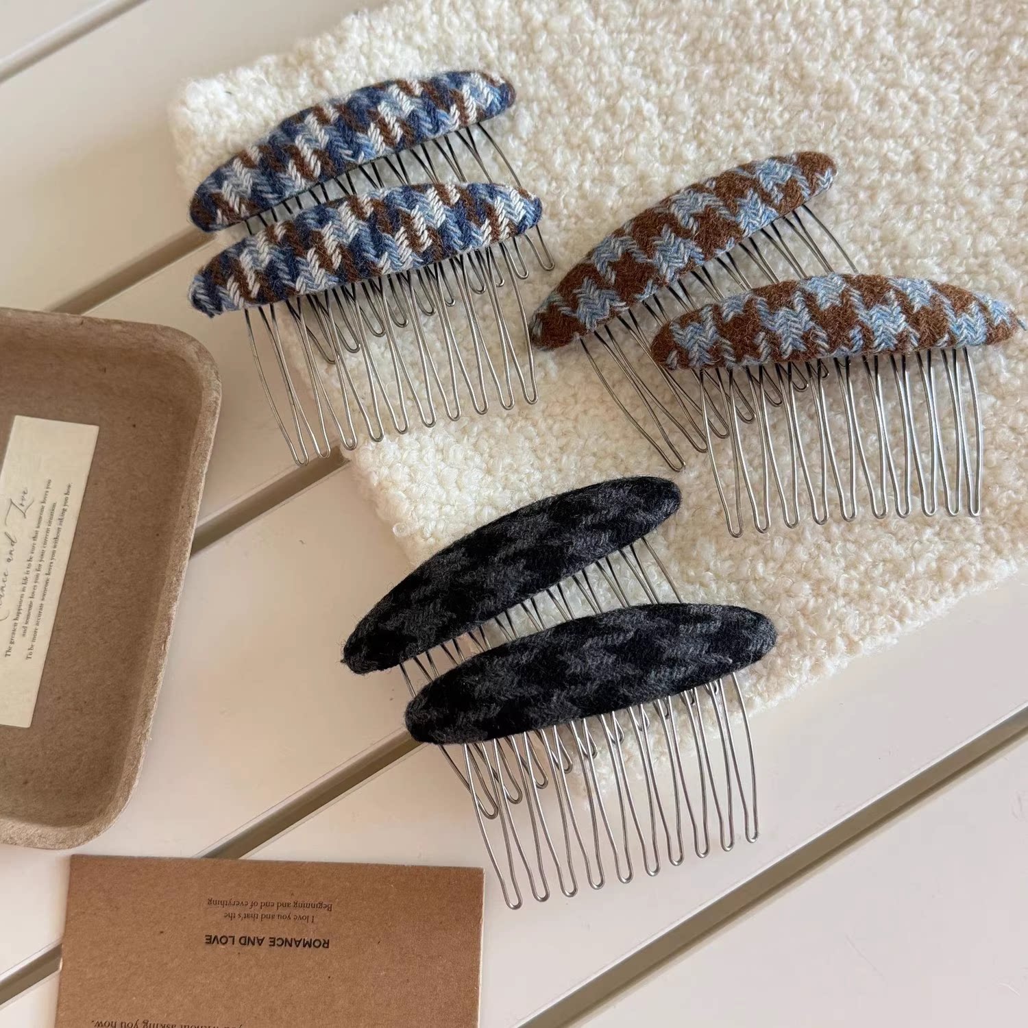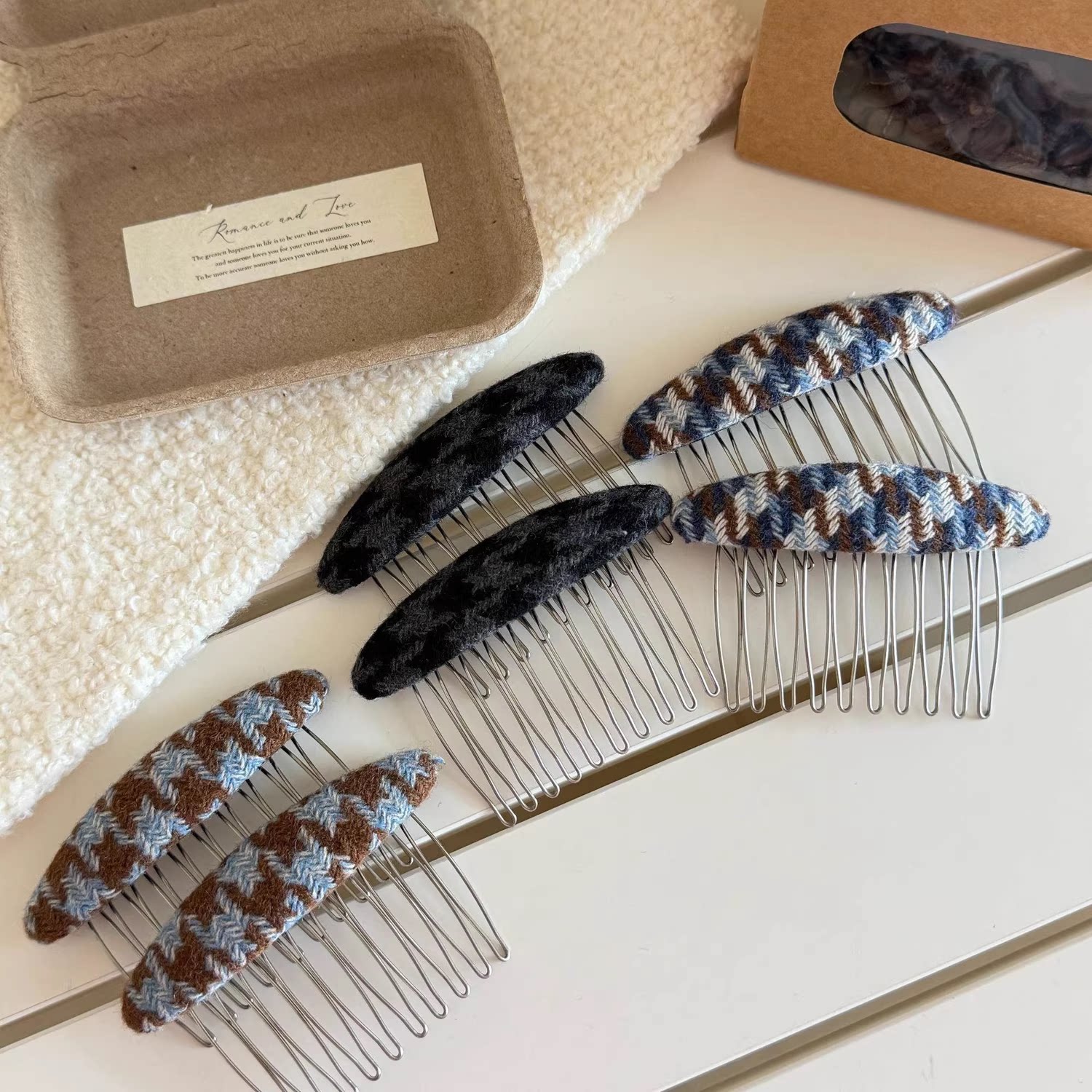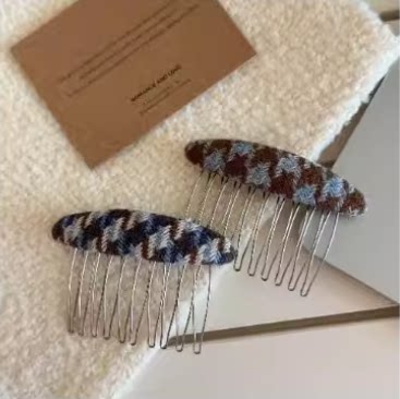 学院风发梳新款刘海倒插梳千鸟格发梳插梳碎发神器发夹女冬季发饰