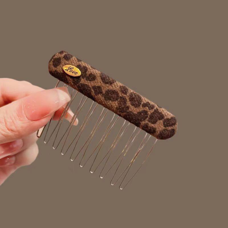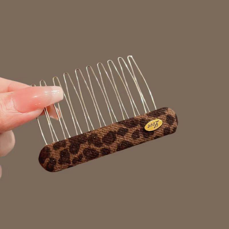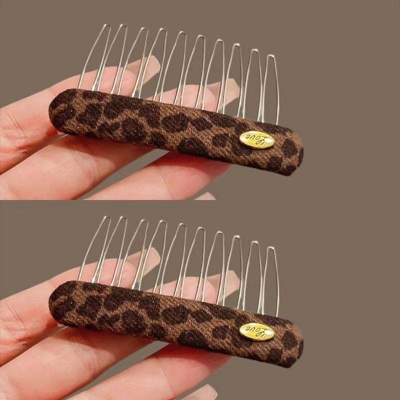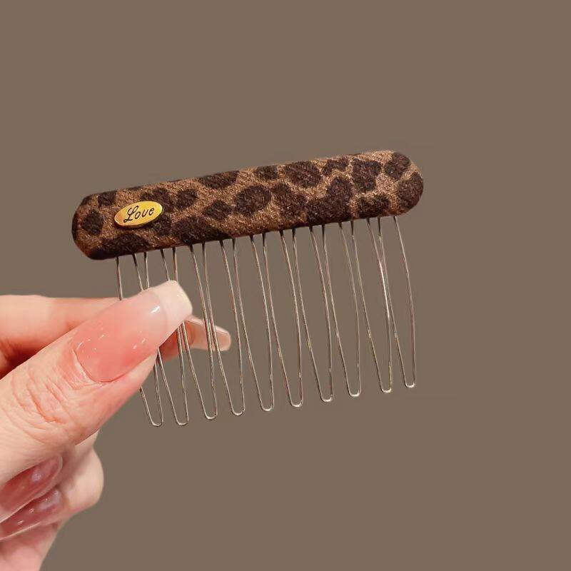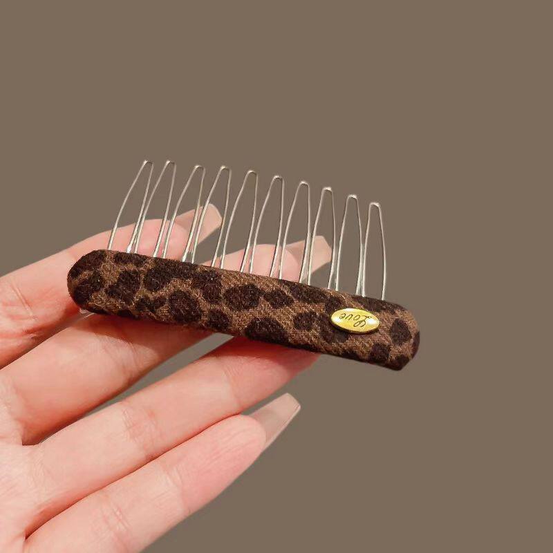 新款发梳碎发夹豹纹倒插梳刘海夹发卡布艺碎发整理神器金属梳齿