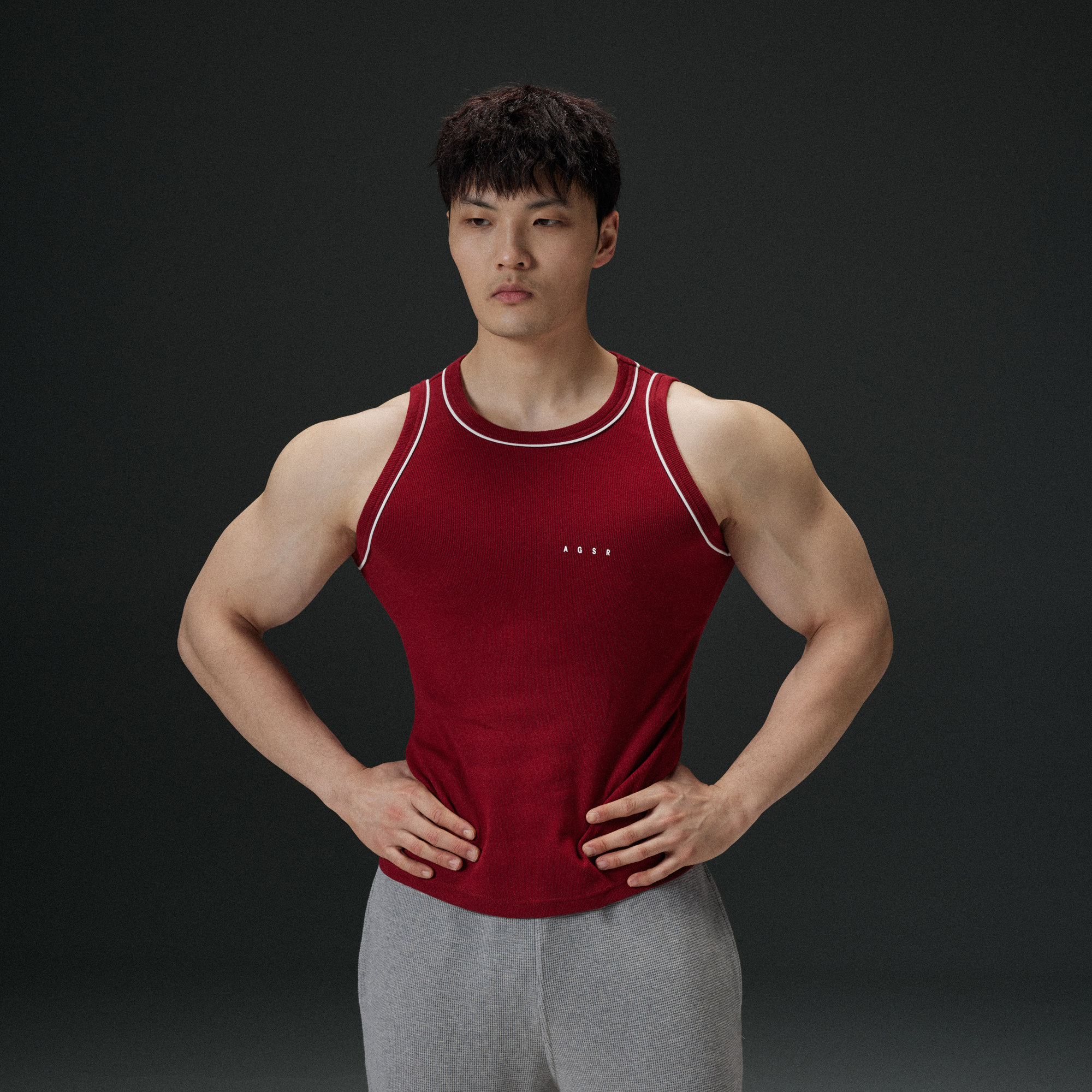 AFTERGLOW春夏显大镶边织带健身背心 重磅超弹透气修身运动汗衫