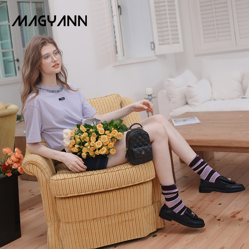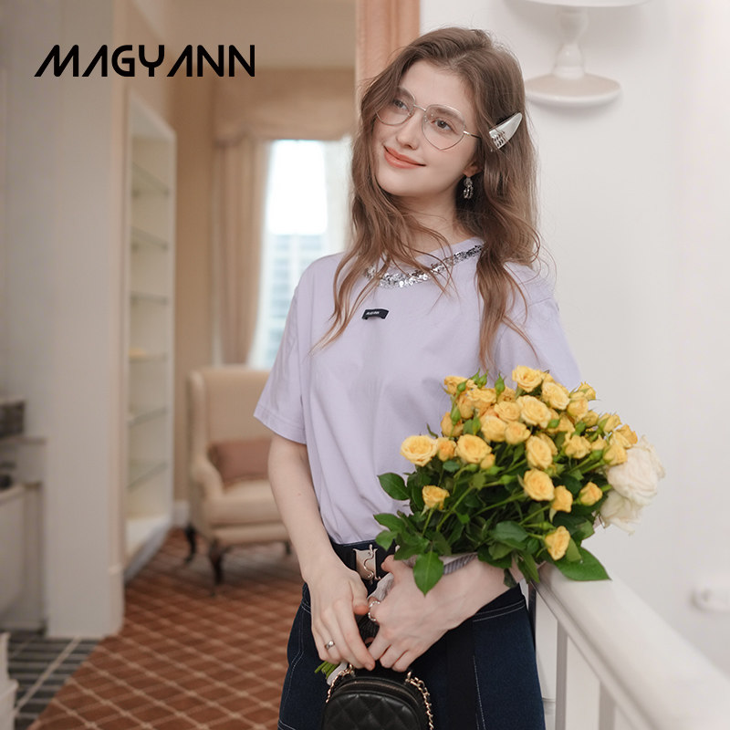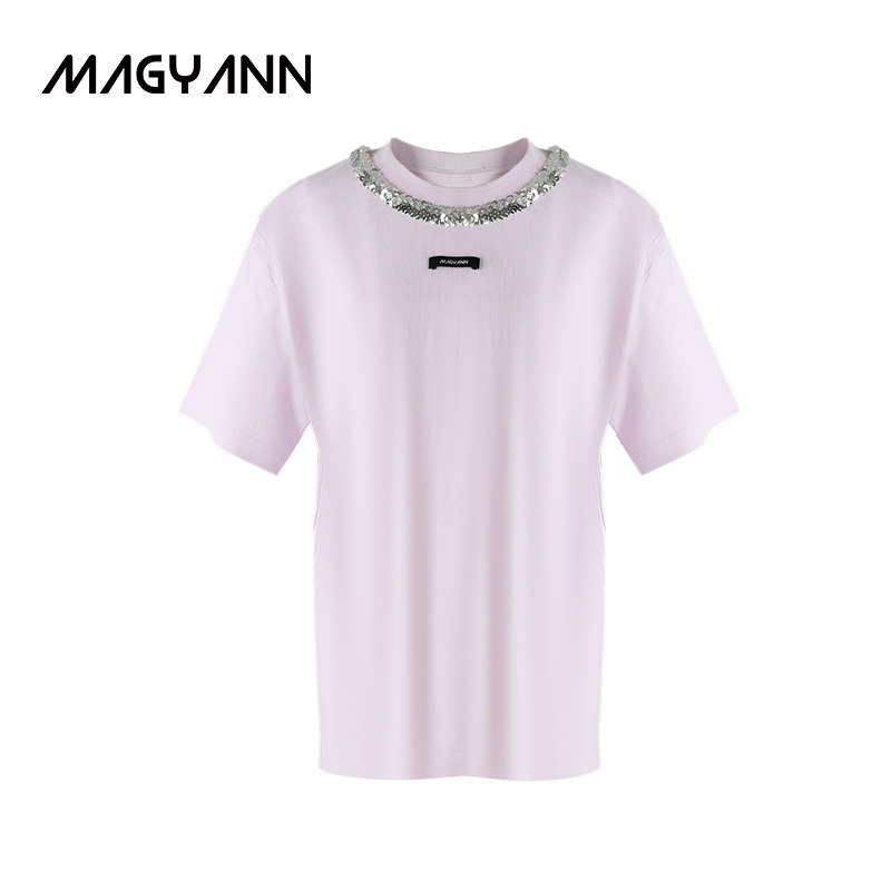 【紫丁香】Magyann设计师原创2026夏新款简约休闲显瘦亮片领T恤女