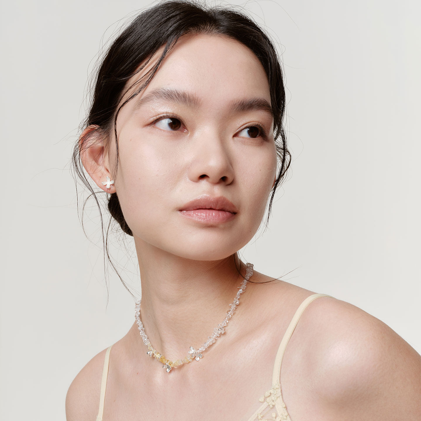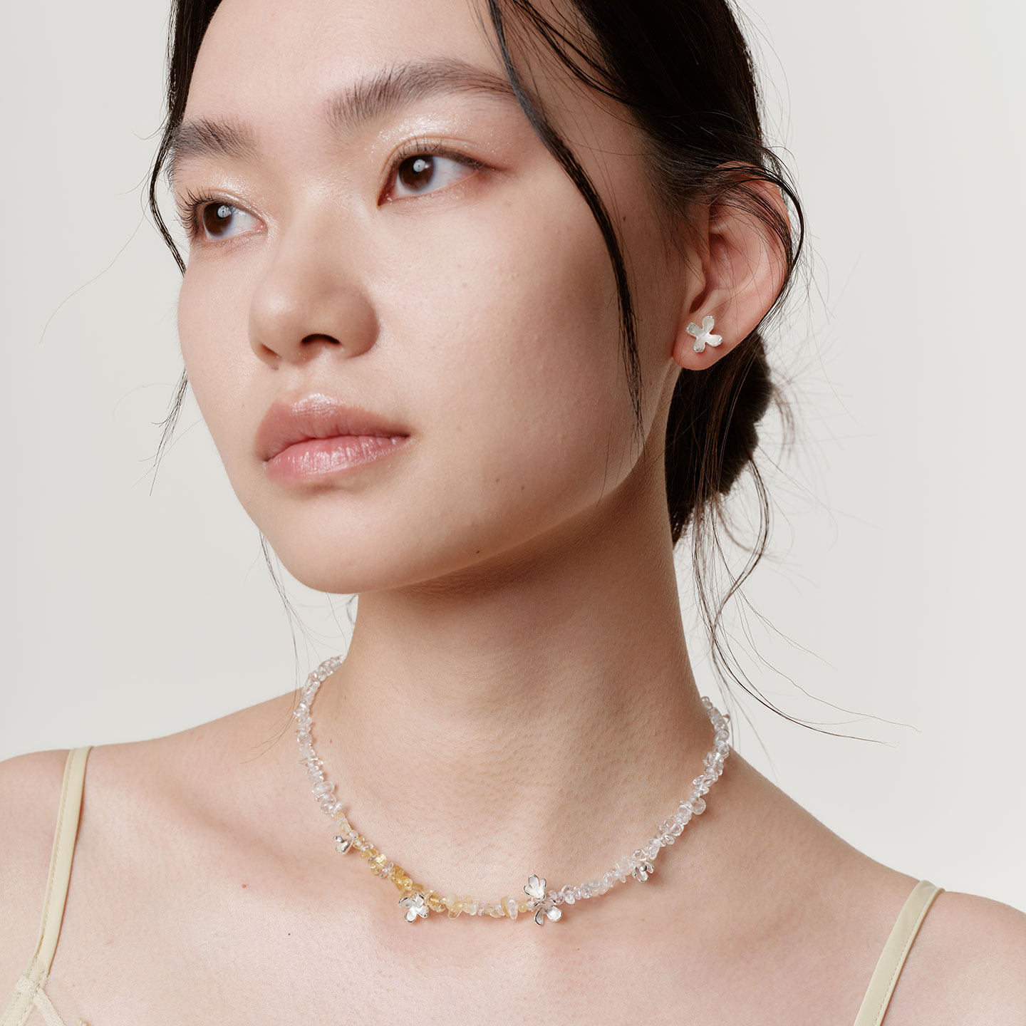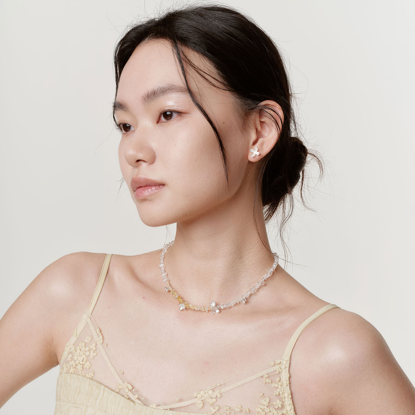 ZHAO ACAP蜜糖与桂花酒白水晶黄水晶项链串珠锁骨链