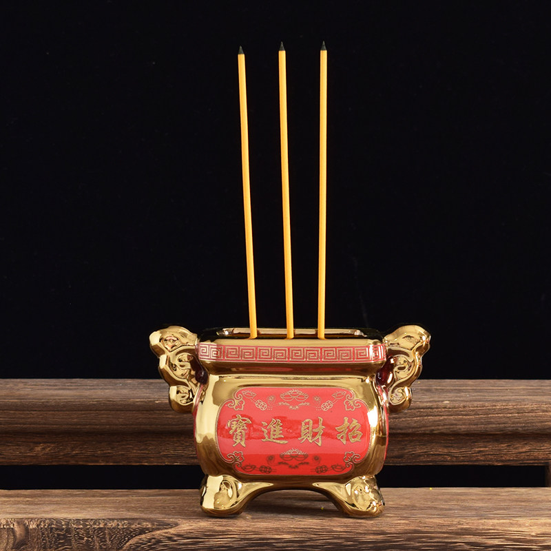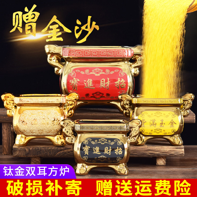 钛金陶瓷家用香炉四足双耳方鼎炉室内供奉供佛仙家观音插香炉