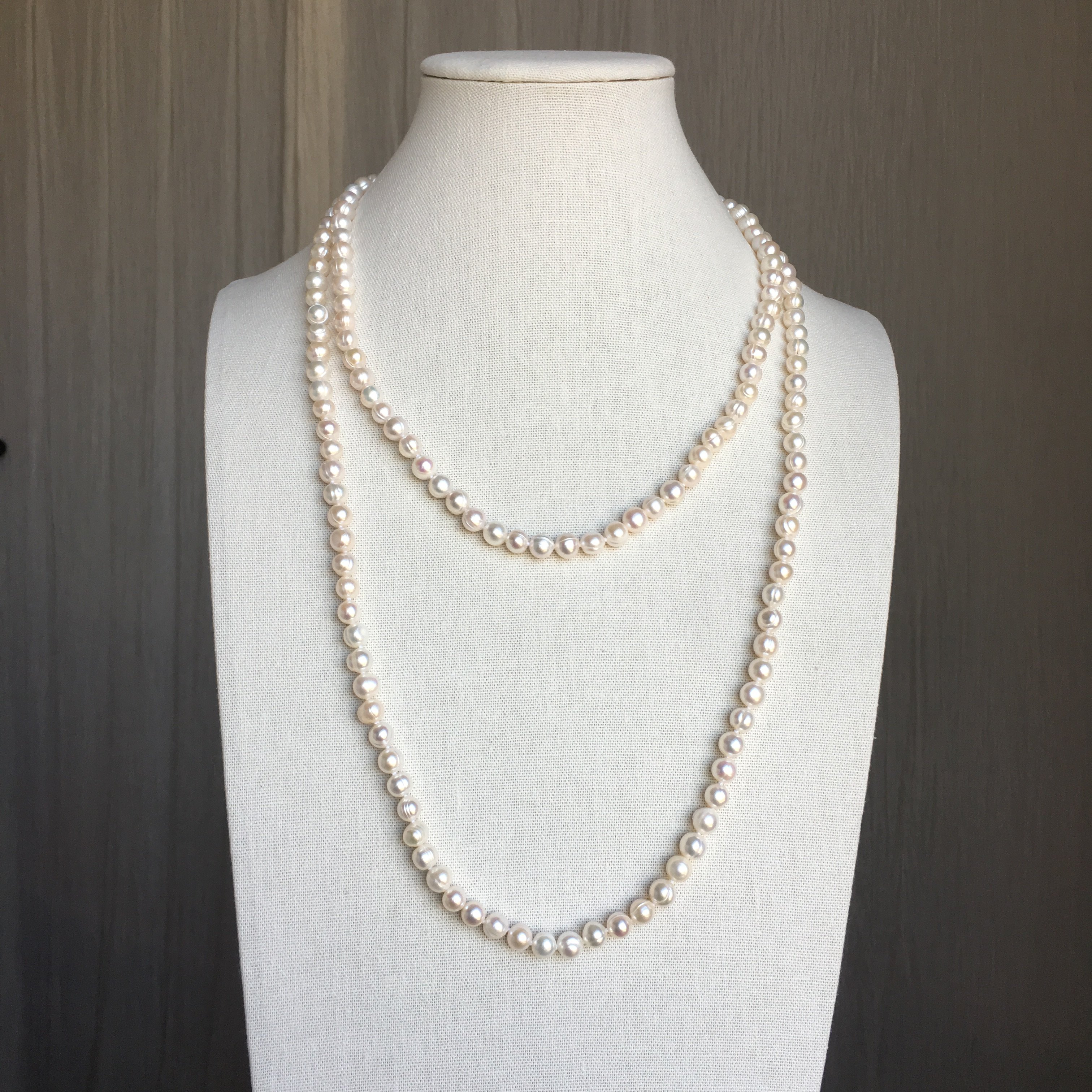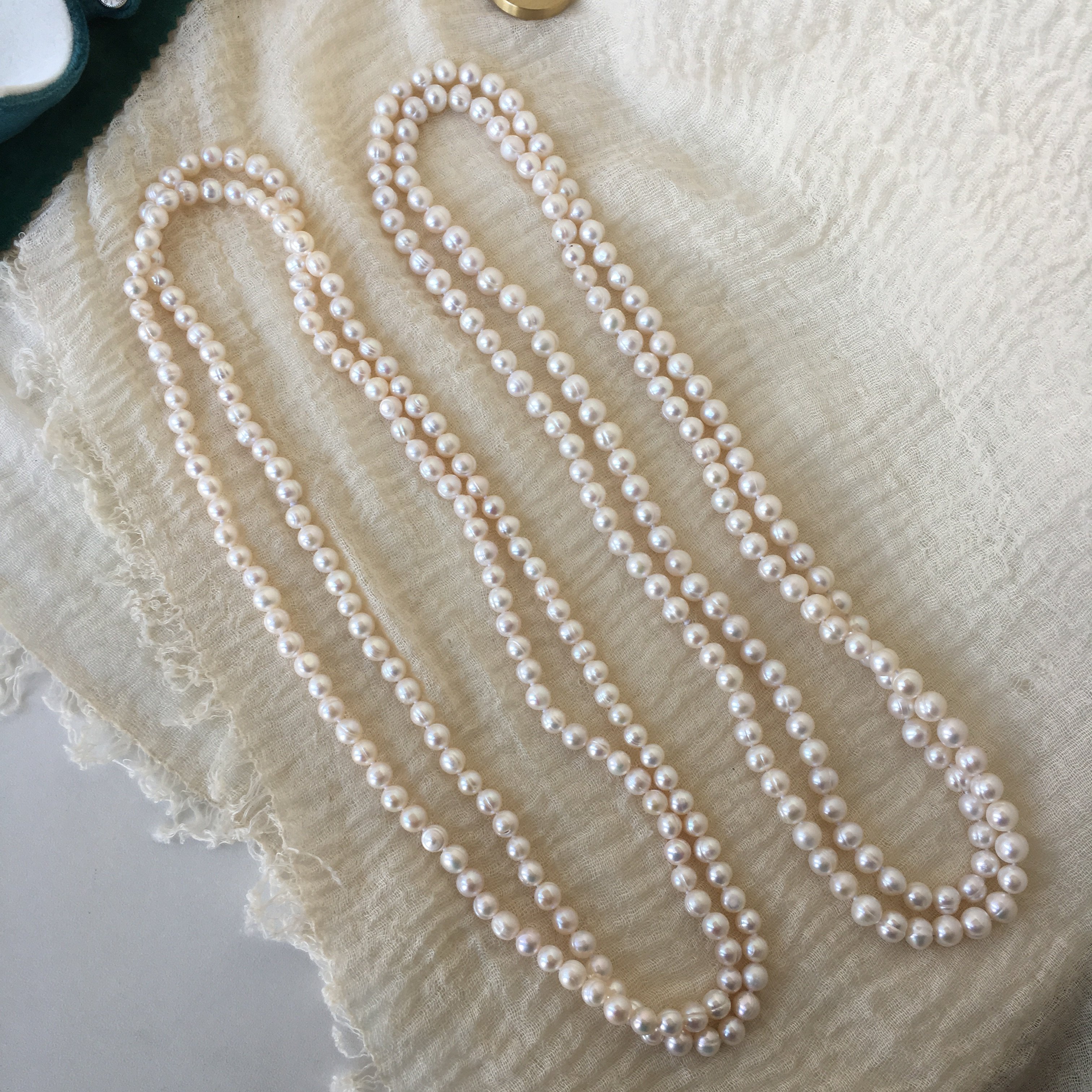 天然珍珠项链女款毛衣链简约经典日常多层珍珠链长链秋冬旗袍项链