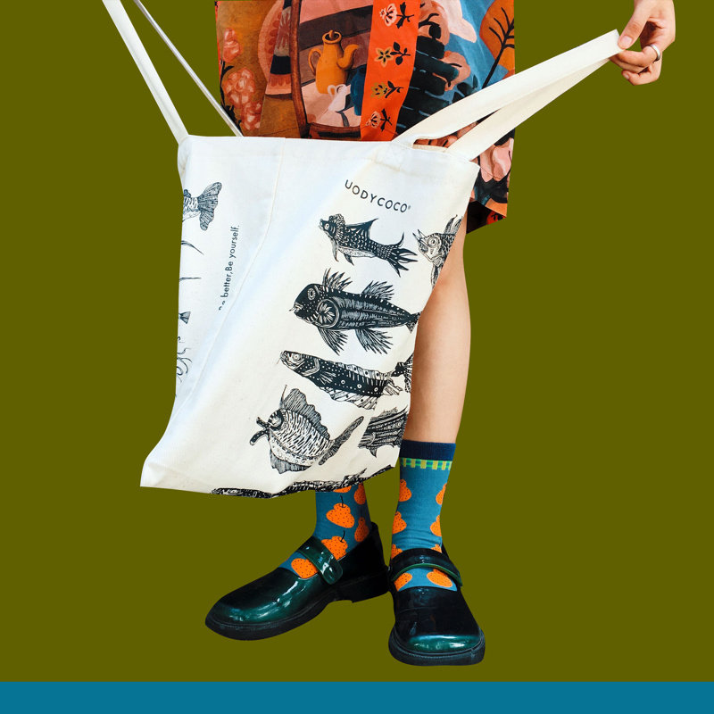 UODYCOCO好多鱼原创个性插画大容量时尚帆布包单肩包购物袋男女
