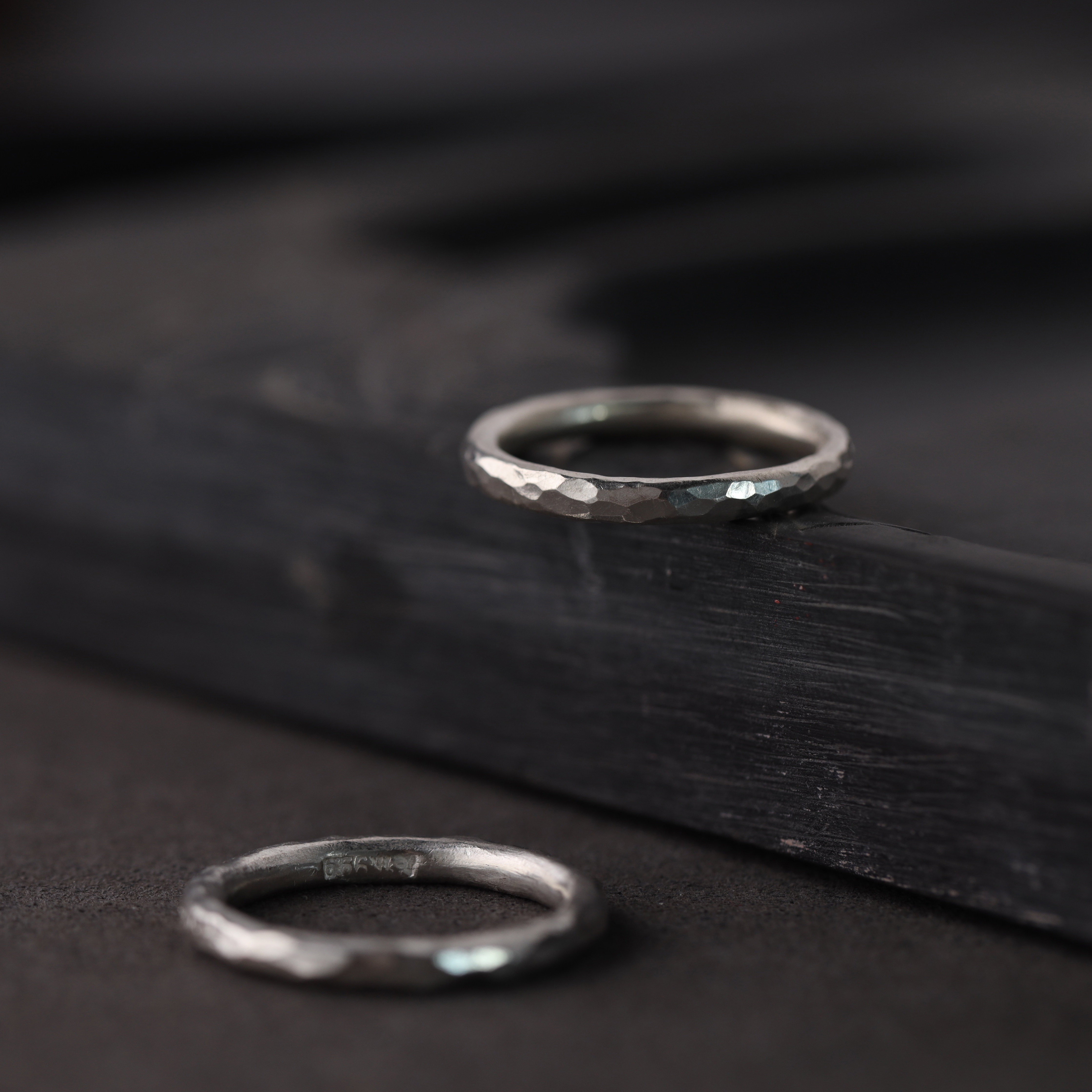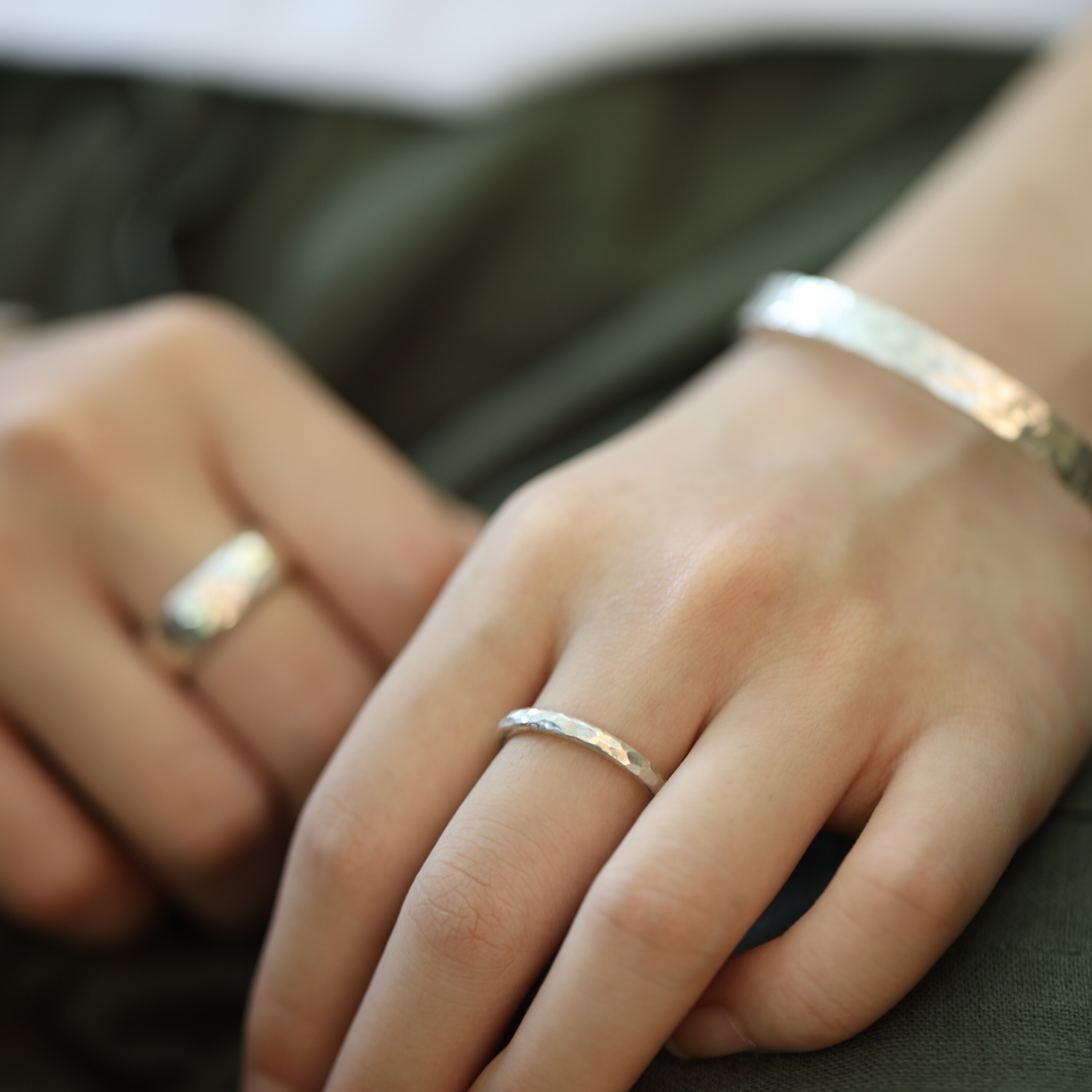 熙素纯手工锤纹戒指纯银999情侣对戒简约素圈实心银指环生日礼物